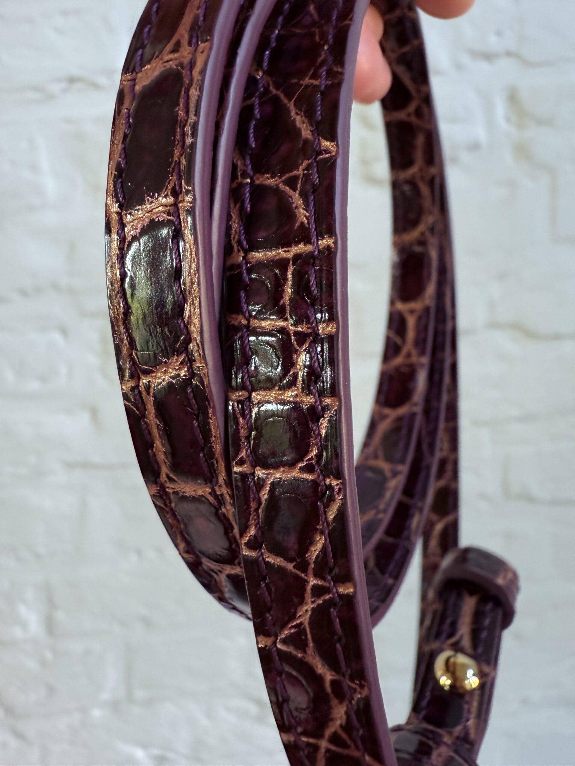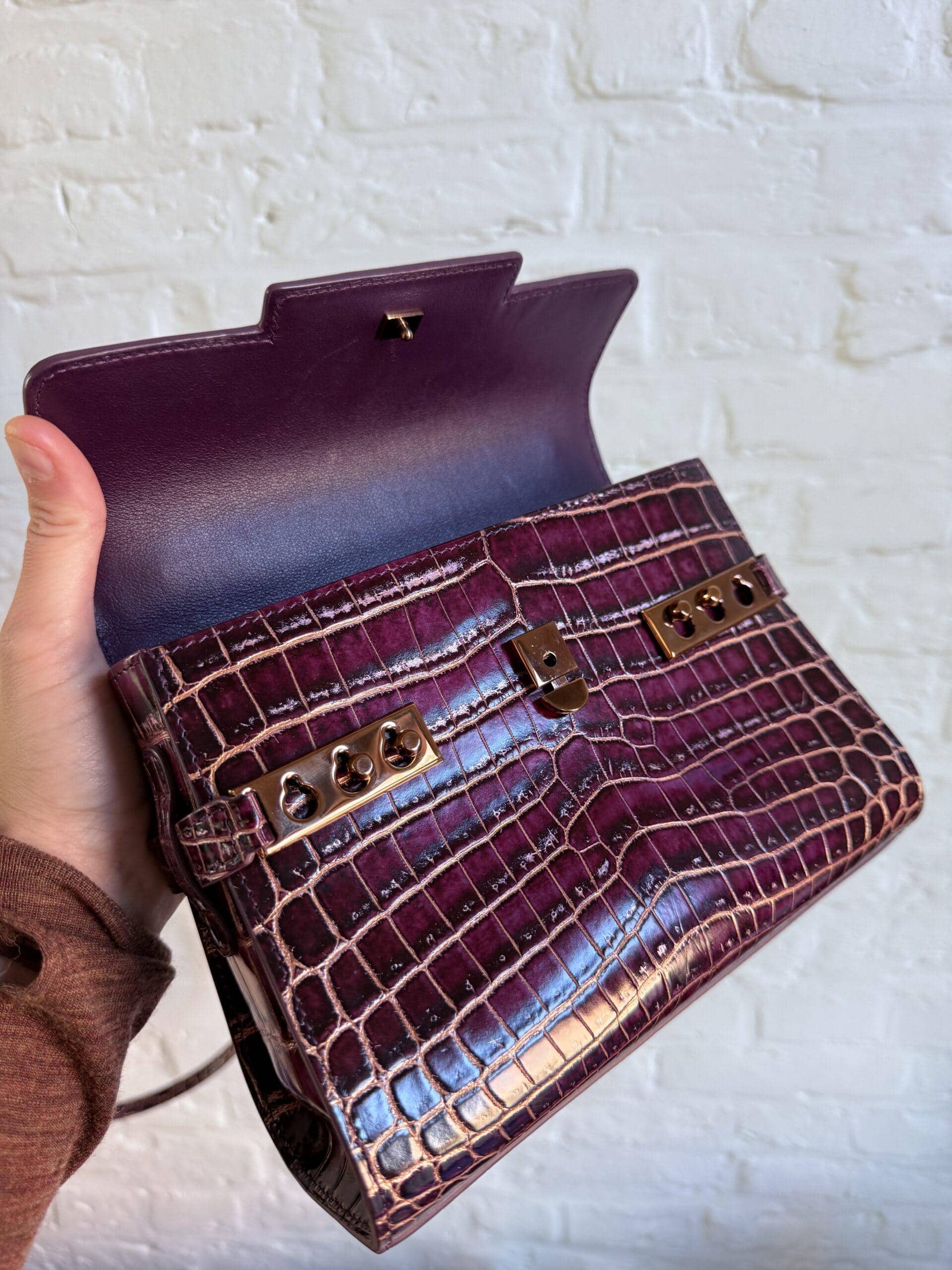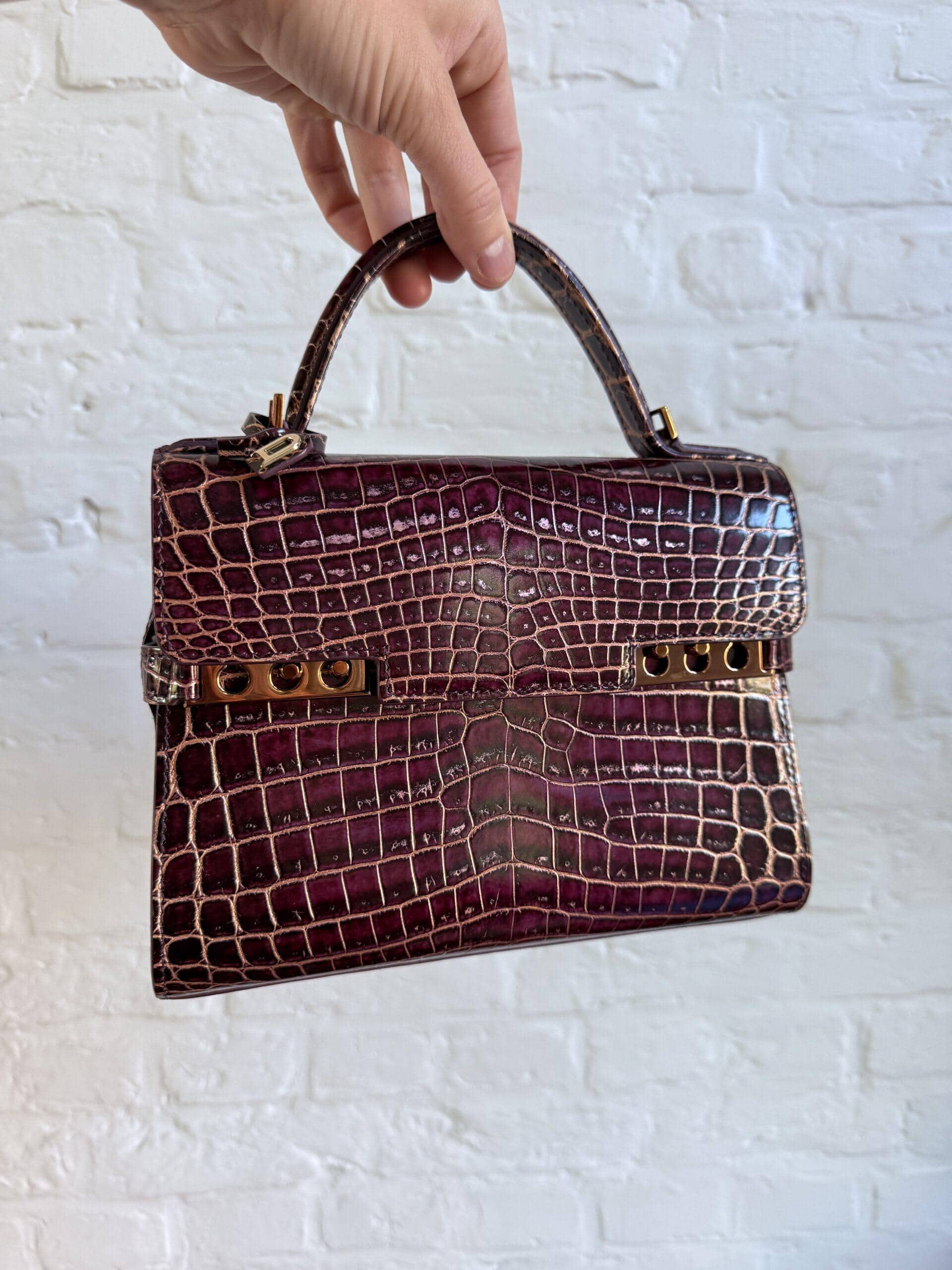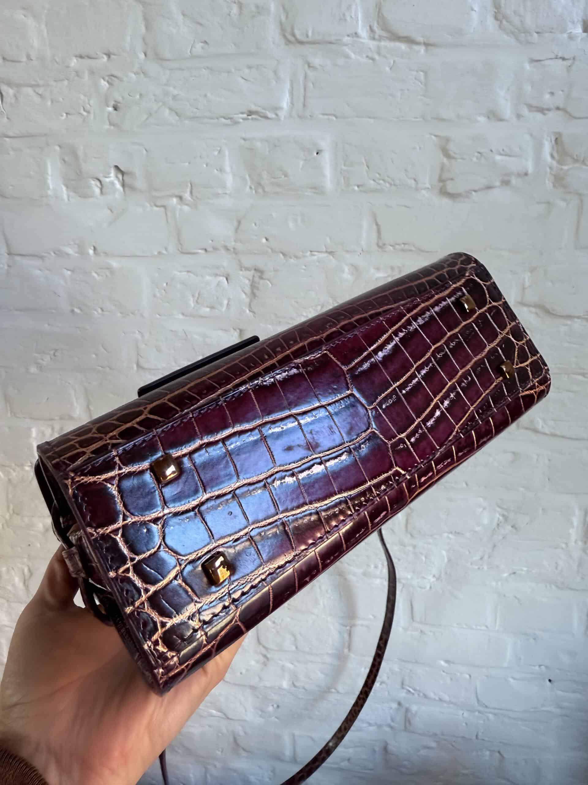 Deze Tempête Mini is heel bijzonder. Uitgevoerd in matte Porosus Crocodile en nabewerkt met goudkleuring en gepolijst.