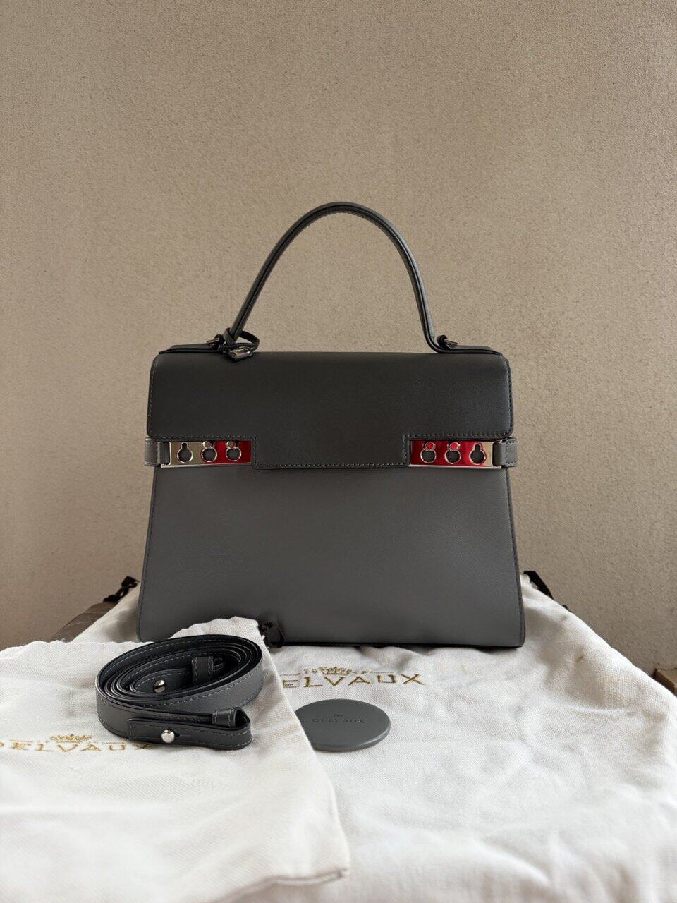 | Accessories | Authentieke Delvaux stofzak, Authentieke Delvaux stofzak voor riem, Riem, Spiegel |