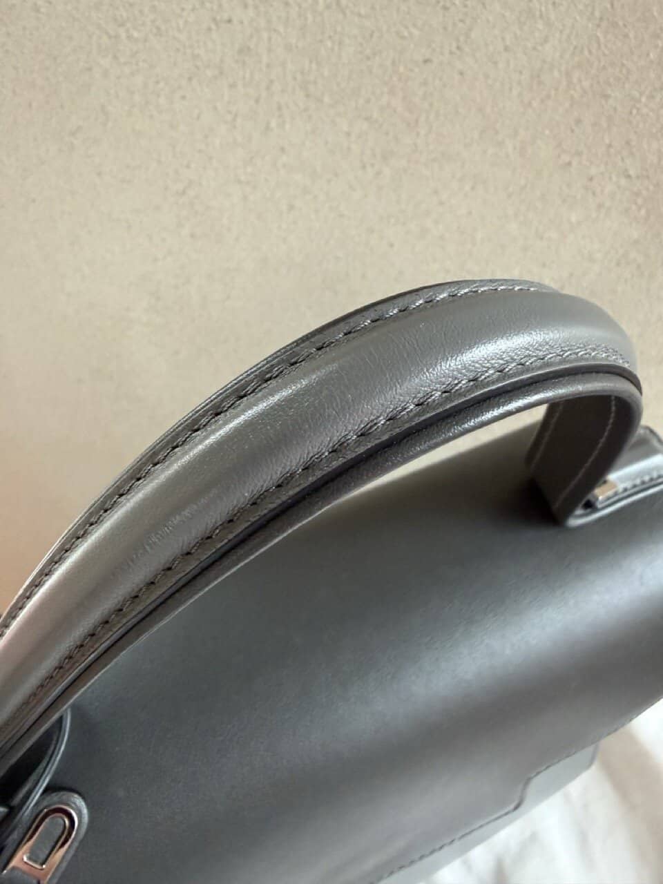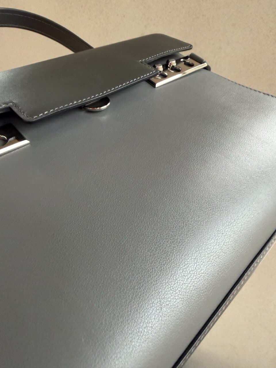 Atelier Mémé besteedt veel tijd en aandacht aan het zorgvuldig selecteren en, indien nodig, retoucheren van originele Delvaux handtassen. De tas is zo correct mogelijk in beeld gebracht met imperfecties die horen bij de vintage staat en manuele ambacht van zowel de Delvauxtas als de ambacht van het restaureren.