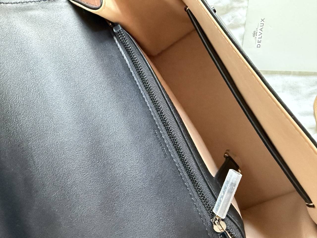 Atelier Mémé besteedt veel tijd en aandacht aan het zorgvuldig selecteren en, indien nodig, retoucheren van originele Delvaux handtassen. De tas is zo correct mogelijk in beeld gebracht met imperfecties die horen bij de vintage staat en manuele ambacht van zowel de Delvauxtas als de ambacht van het restaureren.