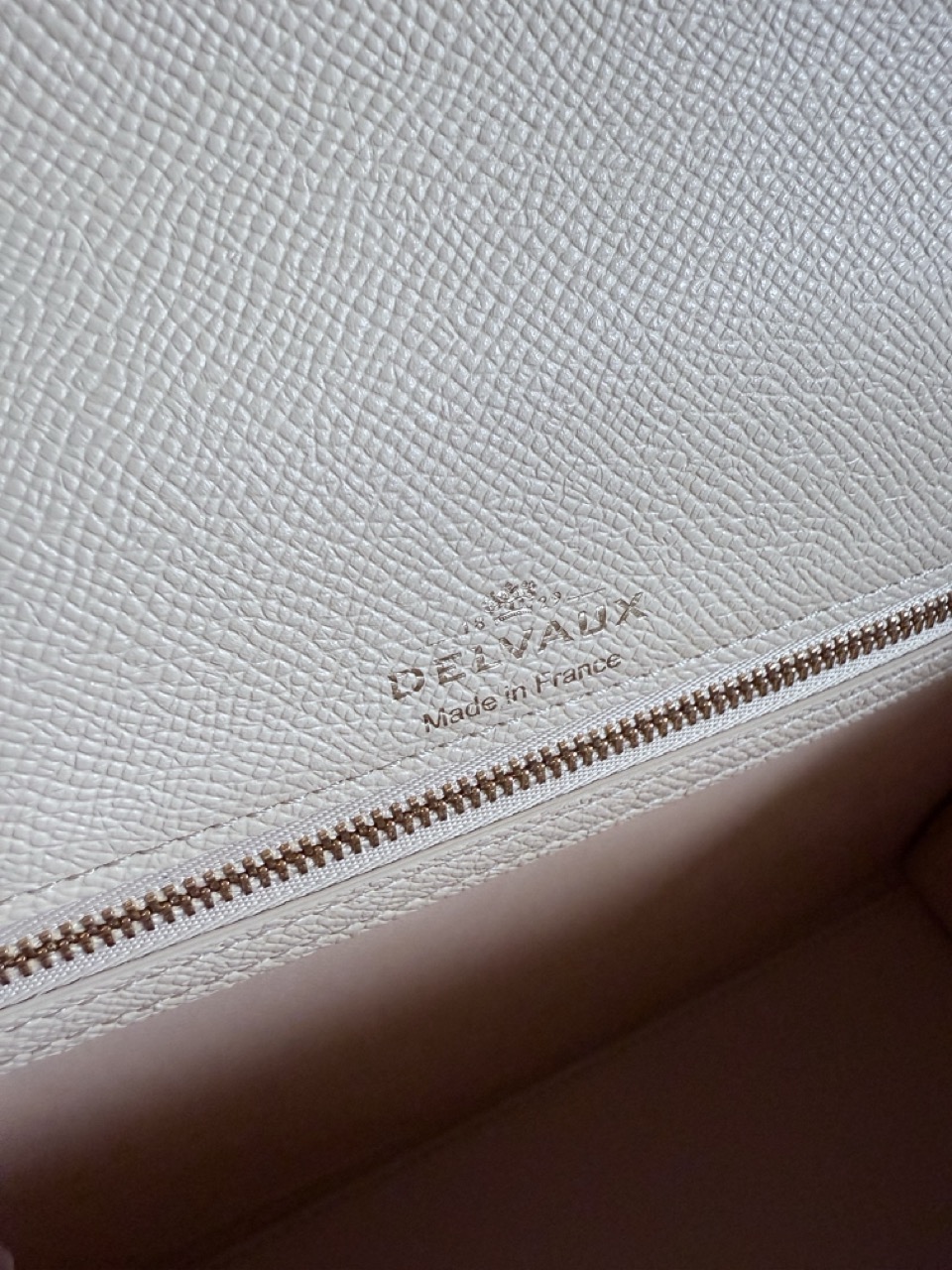 Atelier Mémé besteedt veel tijd en aandacht aan het zorgvuldig selecteren en, indien nodig, retoucheren van originele Delvaux handtassen. De tas is zo correct mogelijk in beeld gebracht met imperfecties die horen bij de vintage staat en manuele ambacht van zowel de Delvauxtas als de ambacht van het restaureren.