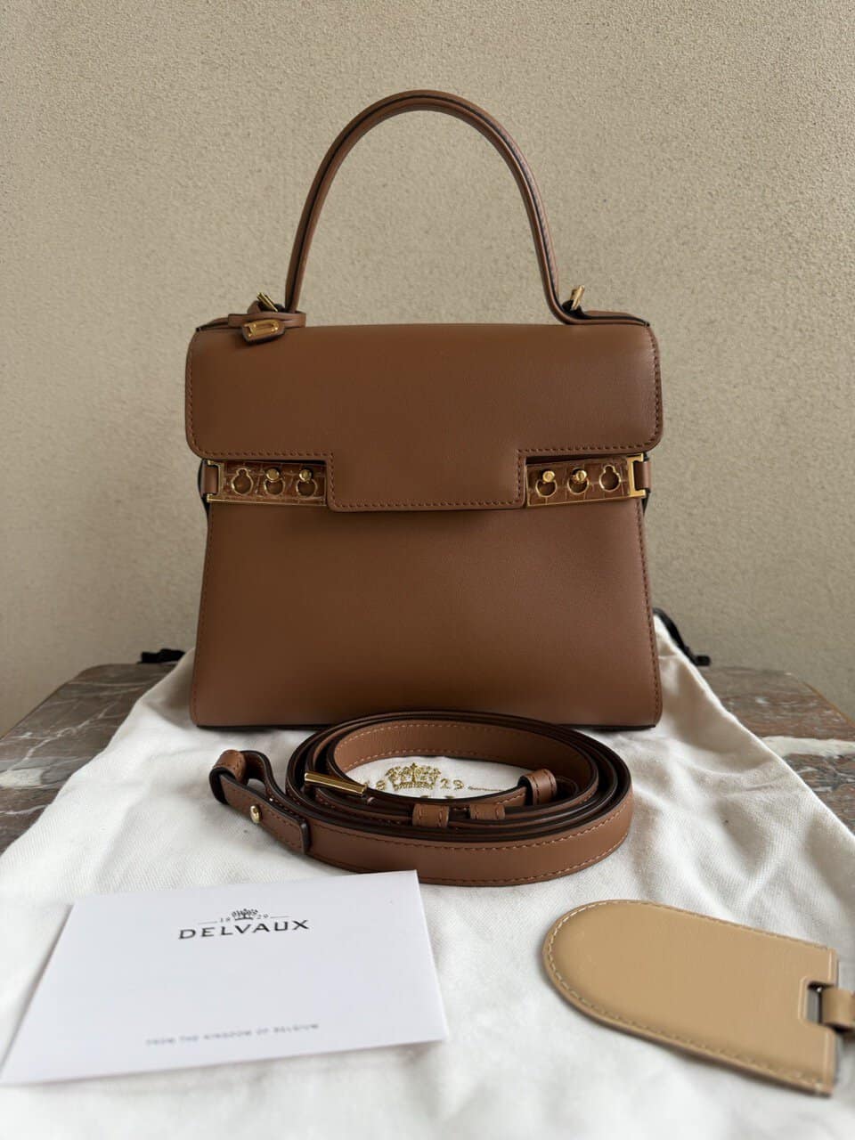| Accessories | Authentieke Delvaux stofzak, Certificaat, Riem, Spiegel |