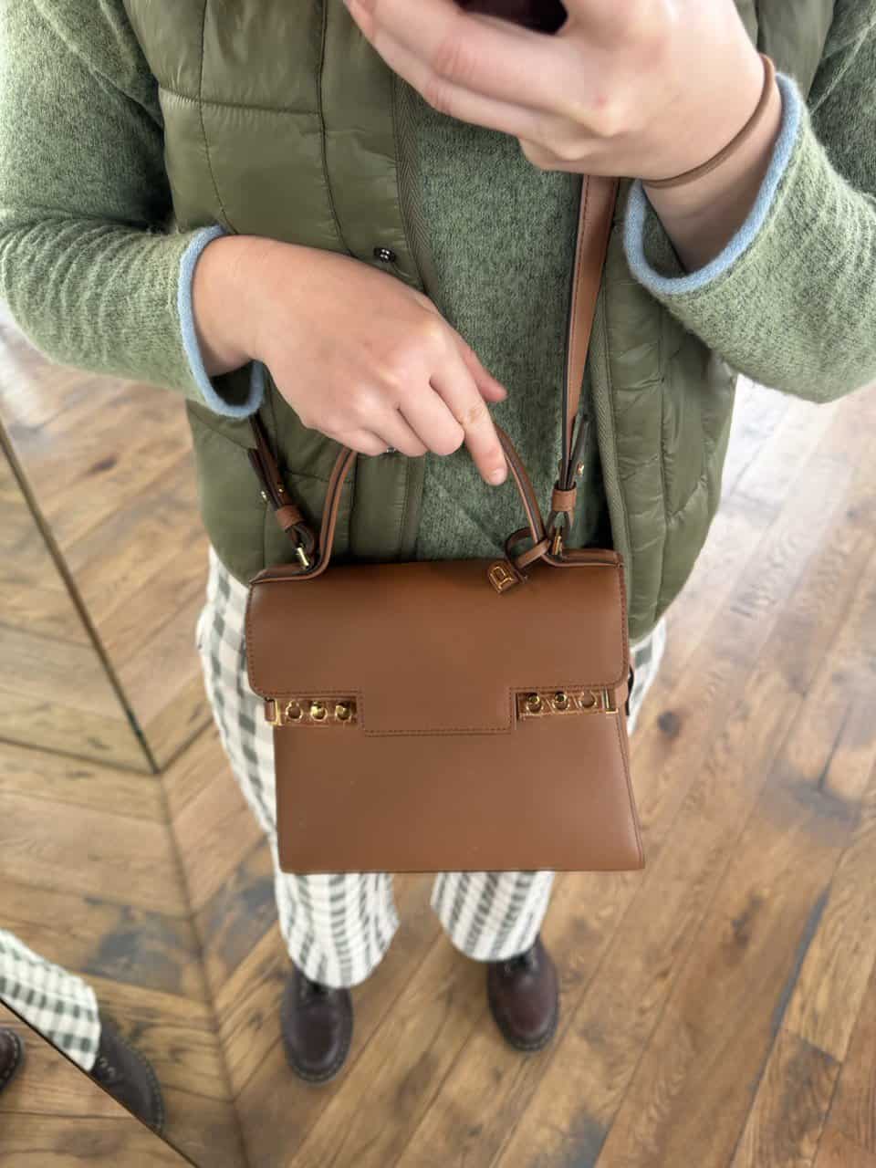 Een juweeltje aan de hand, als crossbody of over de schouder. De PM is een prachtig stuk. Groot genoeg voor al uw essentials en compact genoeg om dag in dag uit crossbody te dragen.