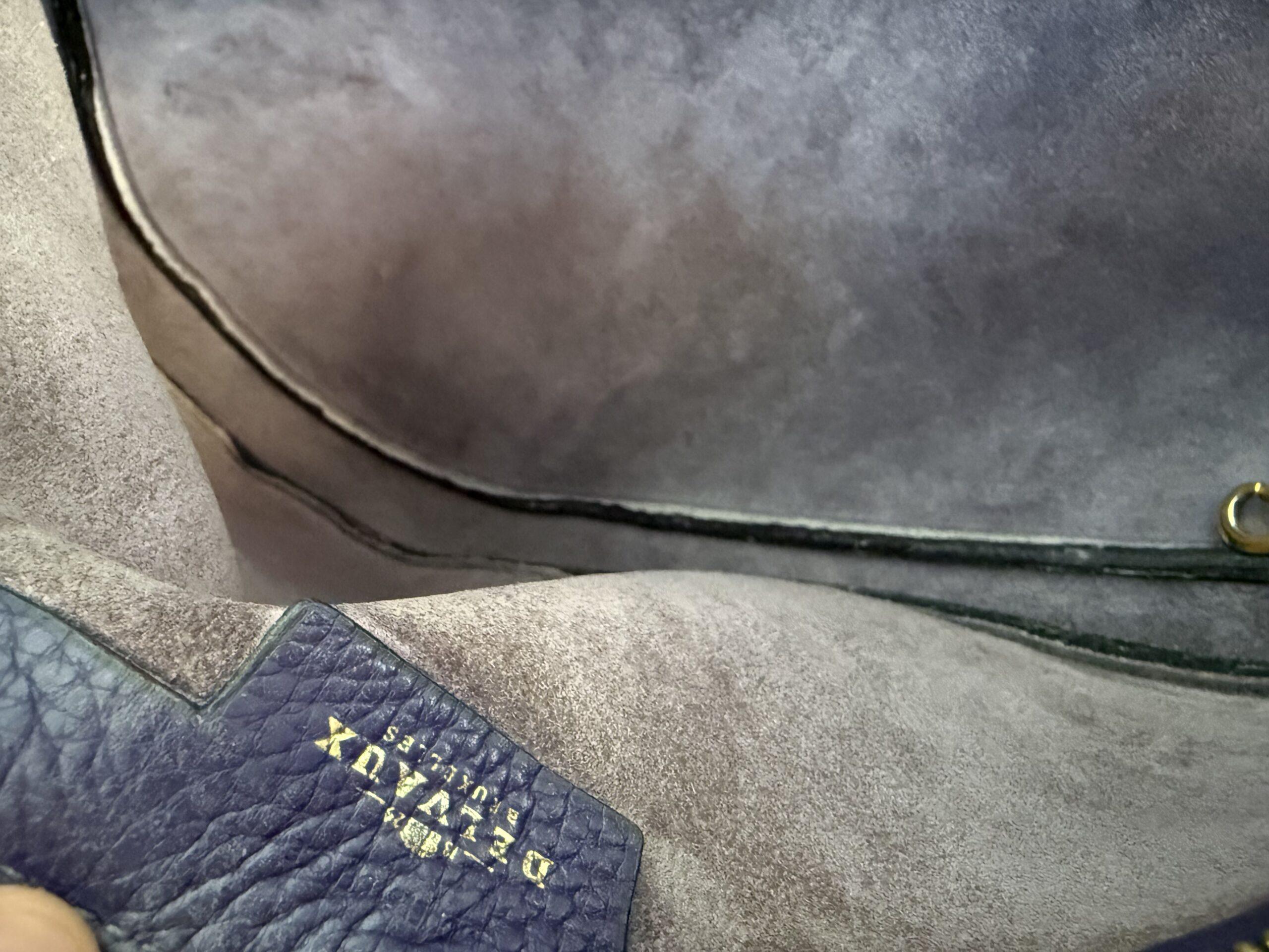 Atelier Mémé besteedt veel tijd en aandacht aan het zorgvuldig selecteren en, indien nodig, retoucheren van originele Delvaux handtassen. De tas is zo correct mogelijk in beeld gebracht met imperfecties die horen bij de vintage staat en manuele ambacht van zowel de Delvauxtas als de ambacht van het restaureren.