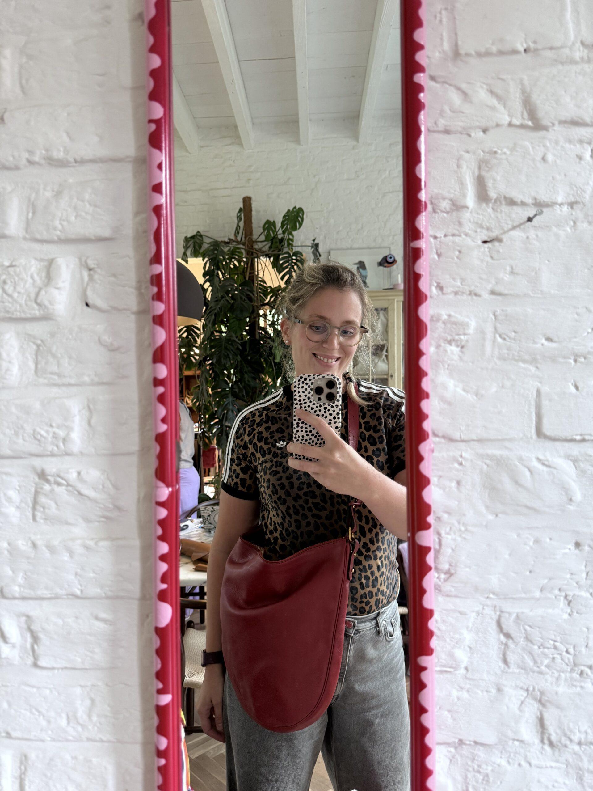 Het is een bijzondere tas uit de jaren ’90 die vandaag nog heel modern oogt. De typische vorm zie je vandaag bij opkomende designers helemaal terug komen.