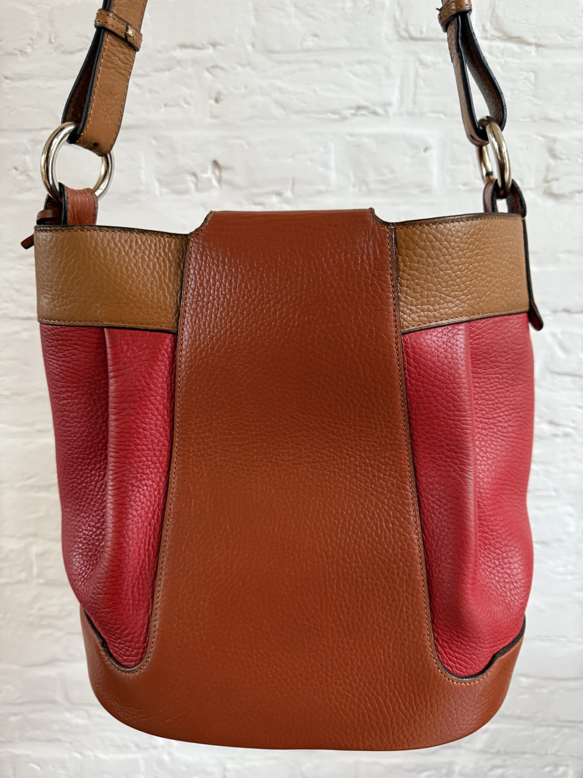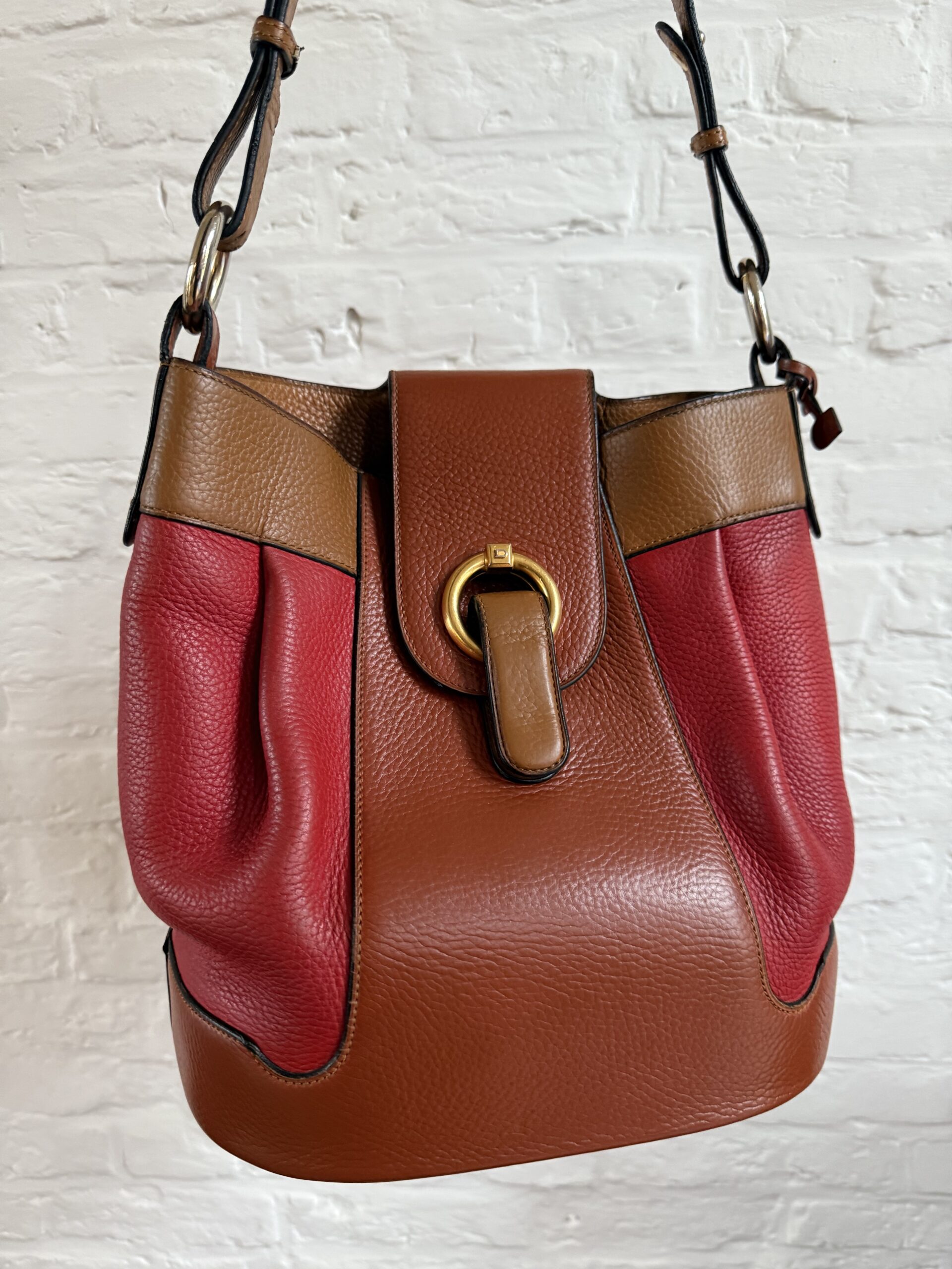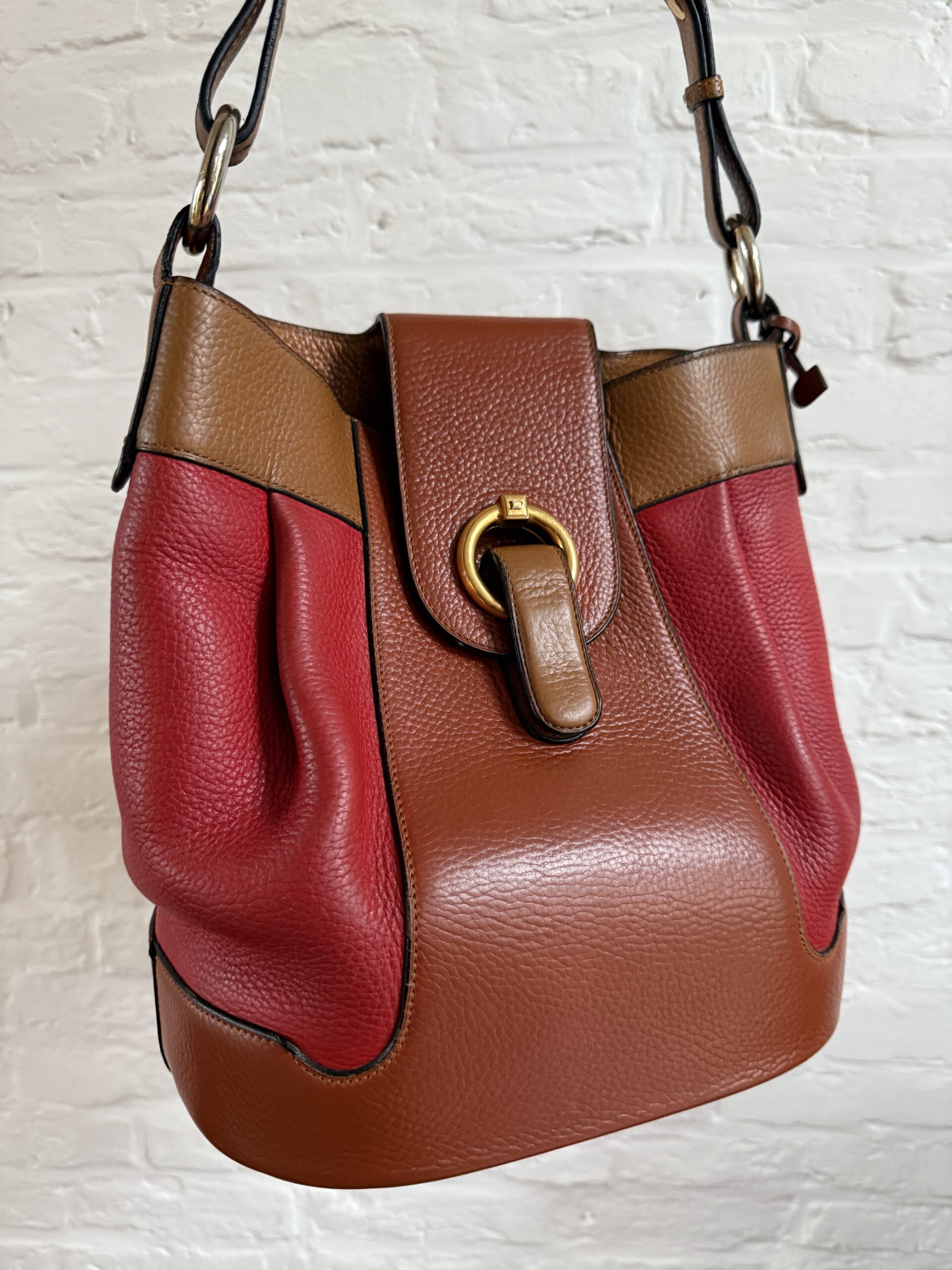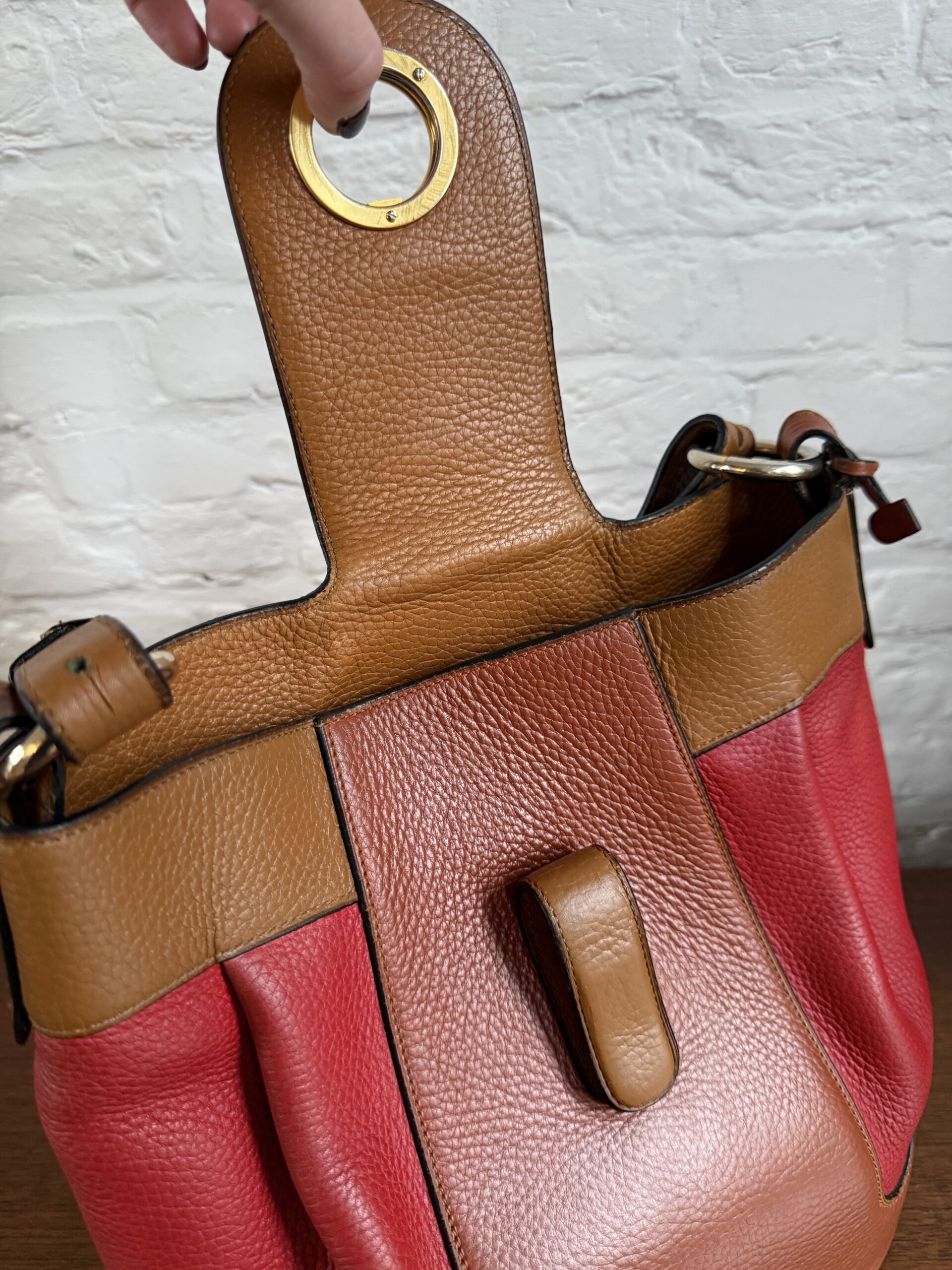 Een bucketbag die je over de schouder draagt in drie waanzinnig mooie complementaire kleuren: rood, fauve en vegetal. Het is een ruime tas bestaande uit 1 groot compartiment uitgevoerd in zo een mooie suede!