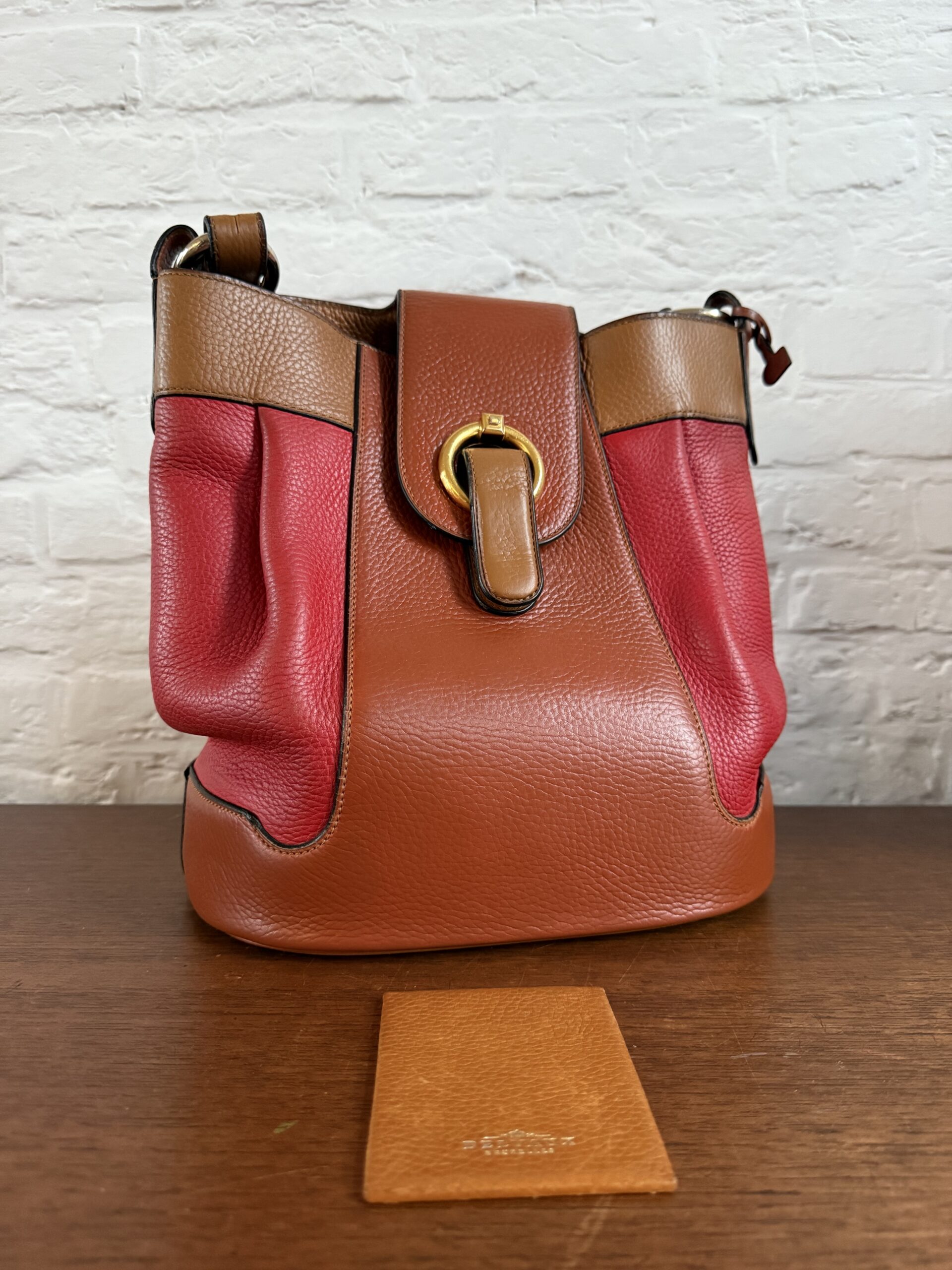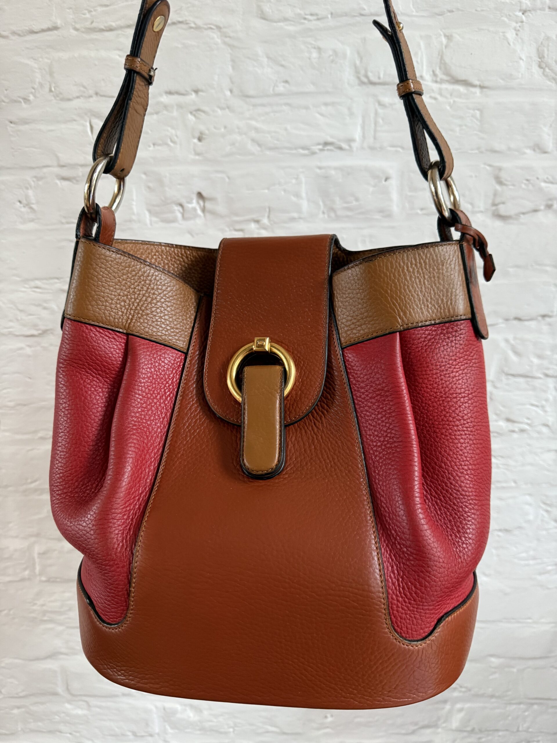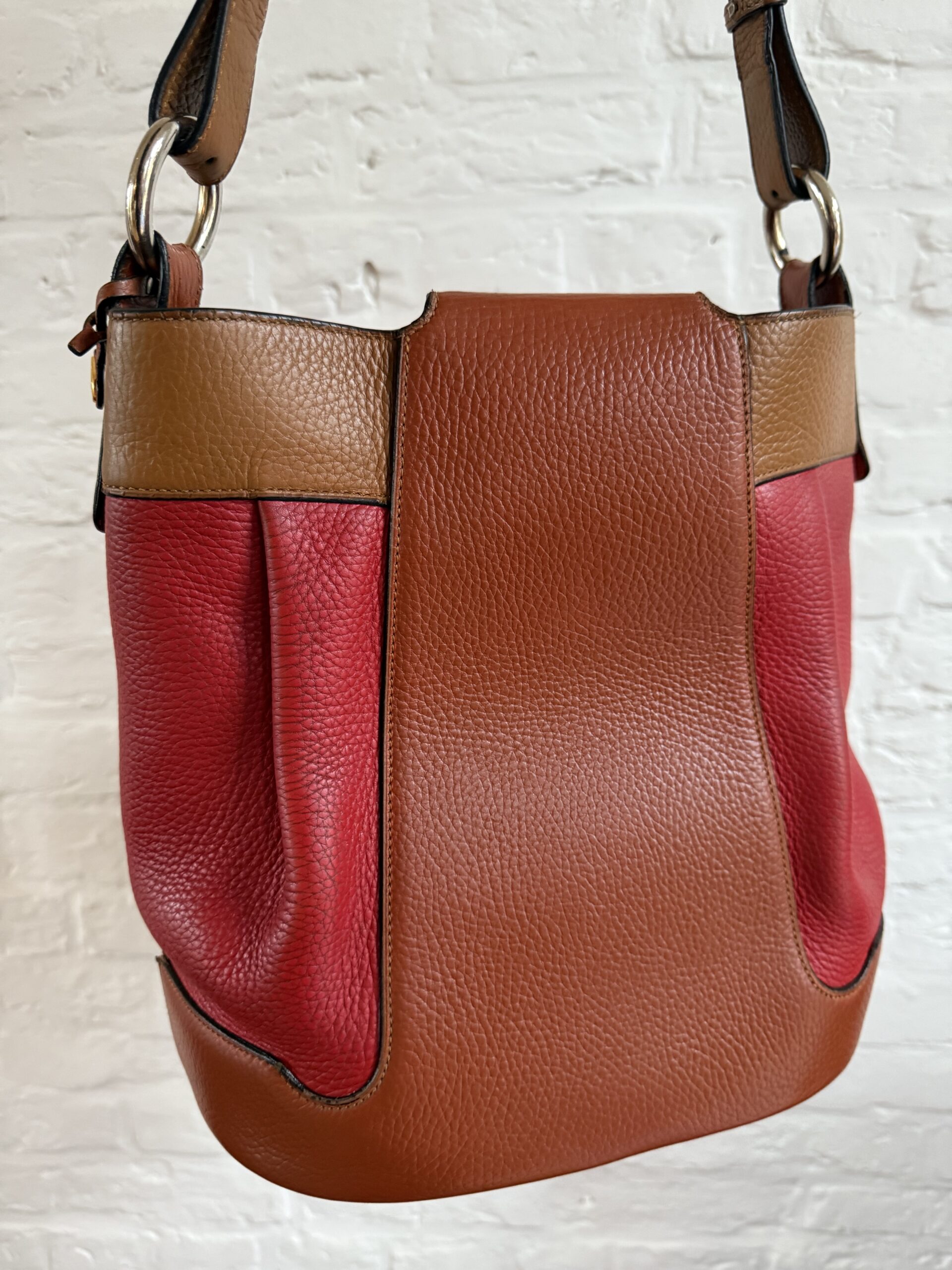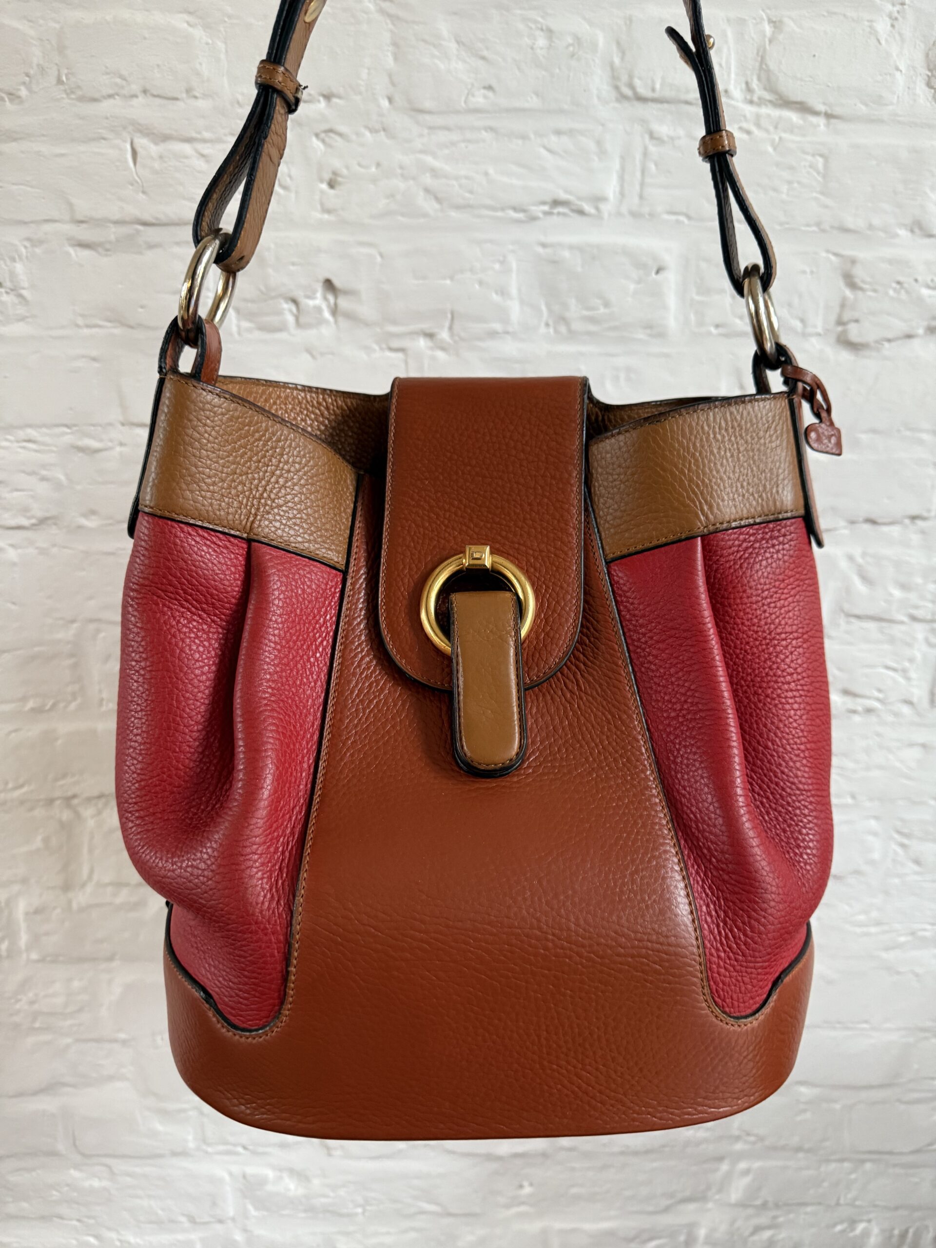 Een bucketbag die je over de schouder draagt in drie waanzinnig mooie complementaire kleuren: rood, fauve en vegetal. Het is een ruime tas bestaande uit 1 groot compartiment uitgevoerd in zo een mooie suede!