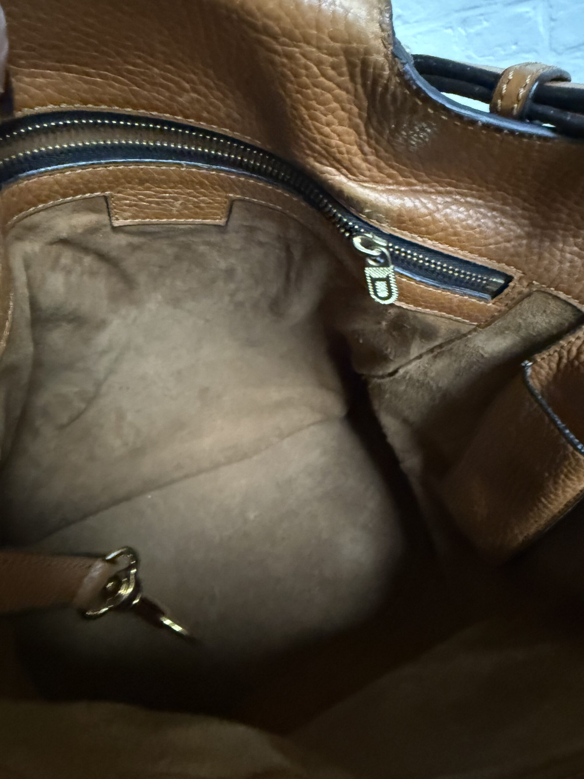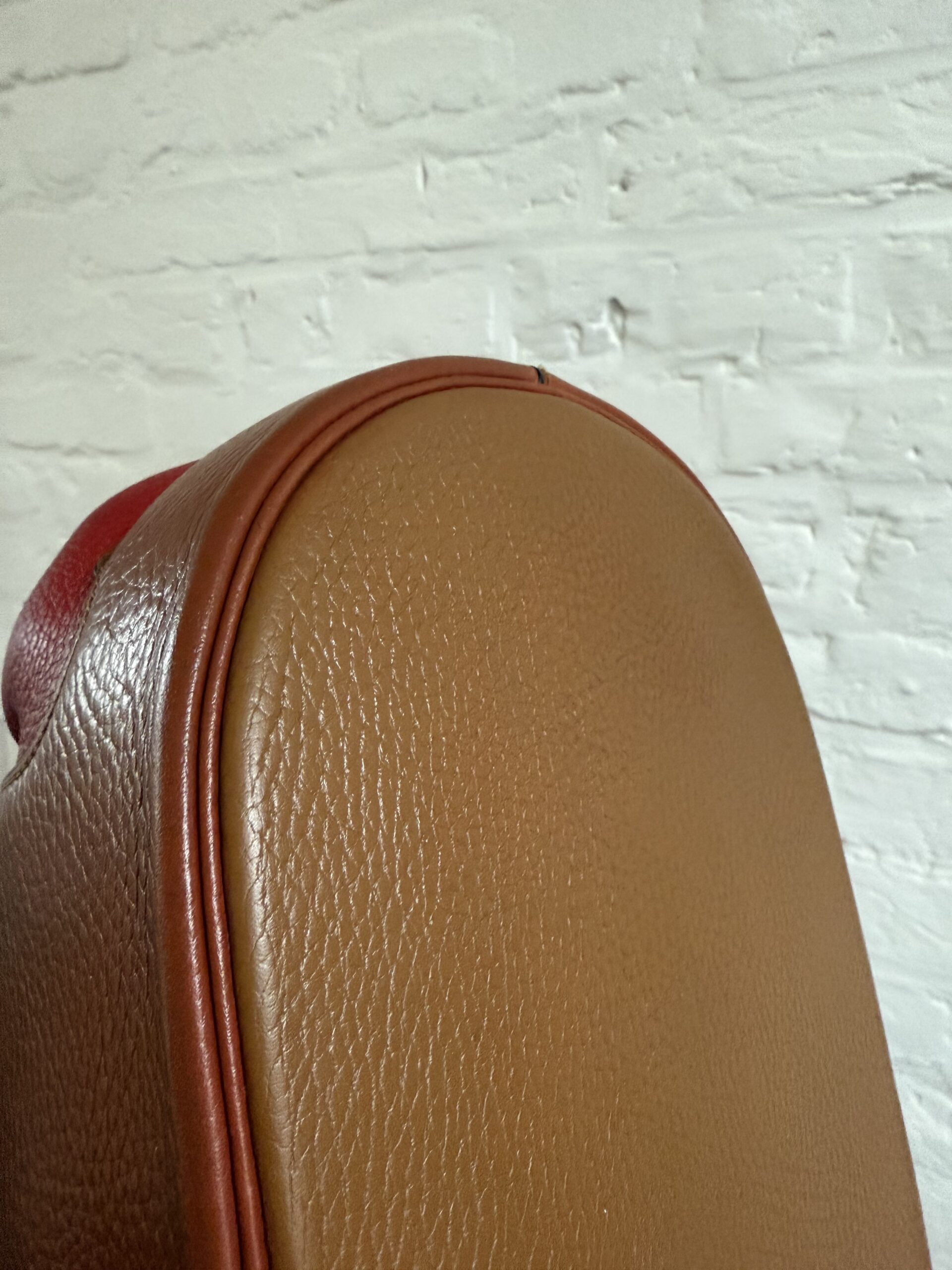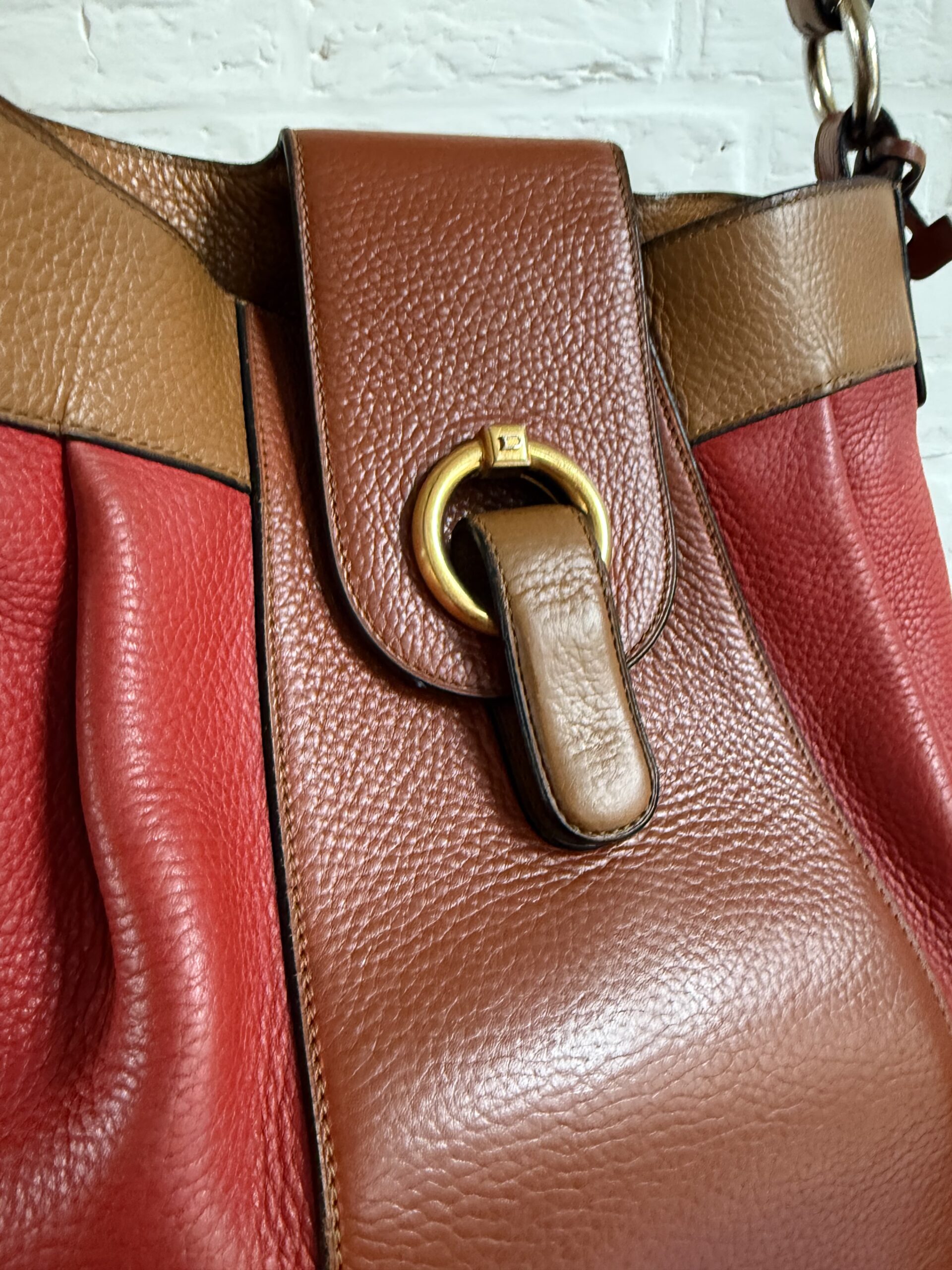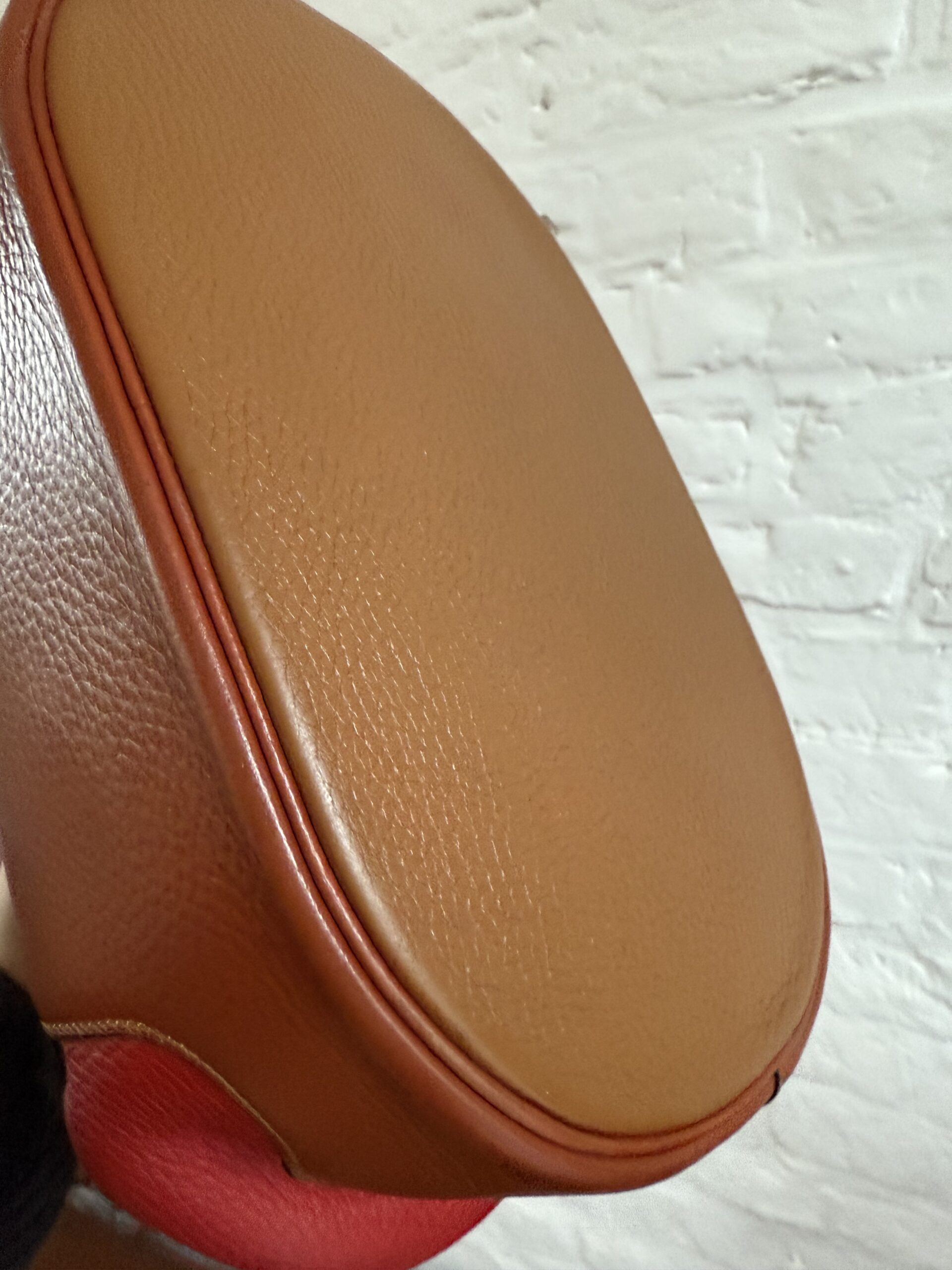 De tas is afgewerkt met een mooi detail in gouden hardware. Het leder werd volledig gerestaureerd en is prachtig! Ook de kantverf werd hersteld, kijk even hoe smooth die is bovenaan op de tas. ***fier***