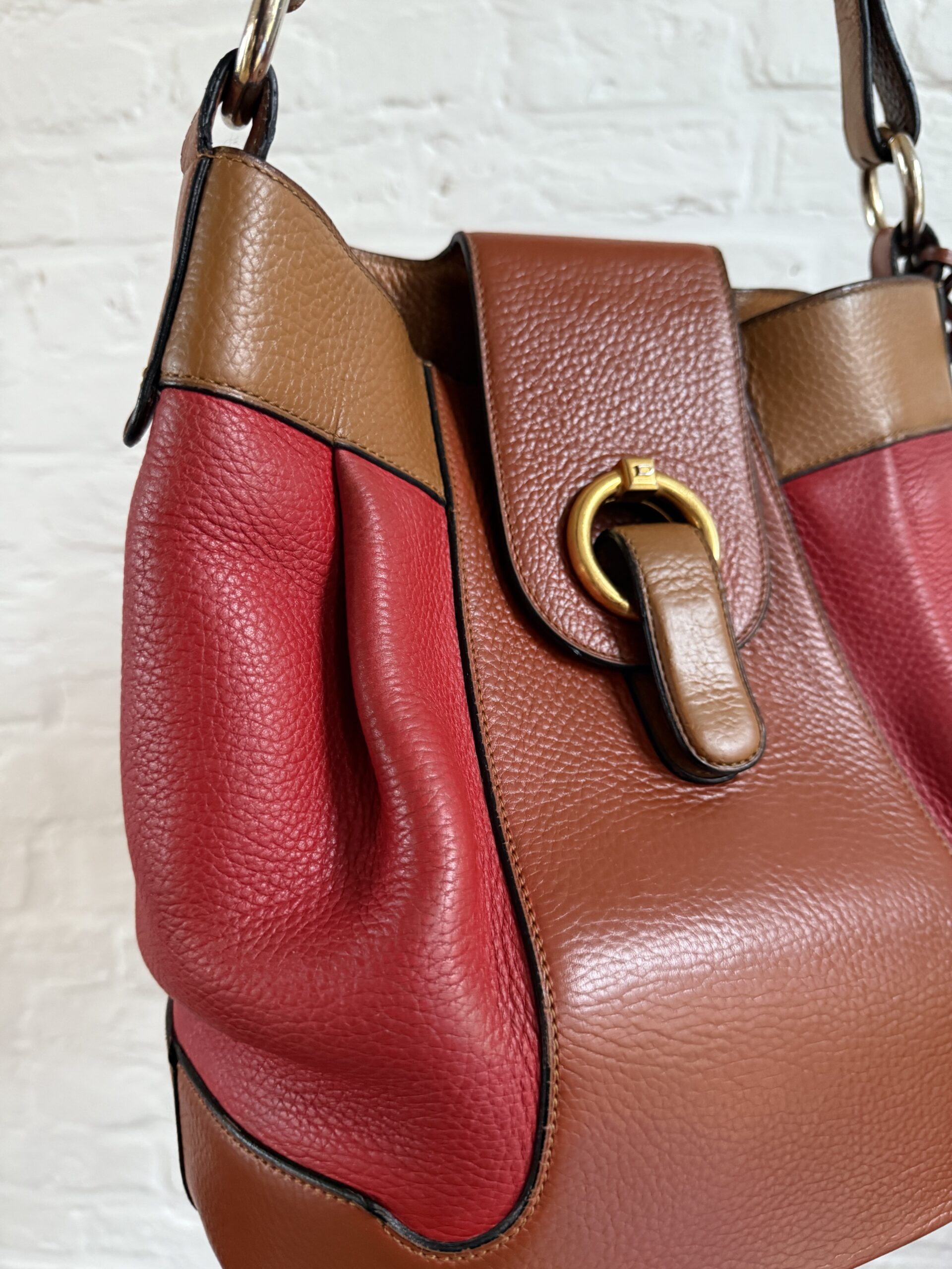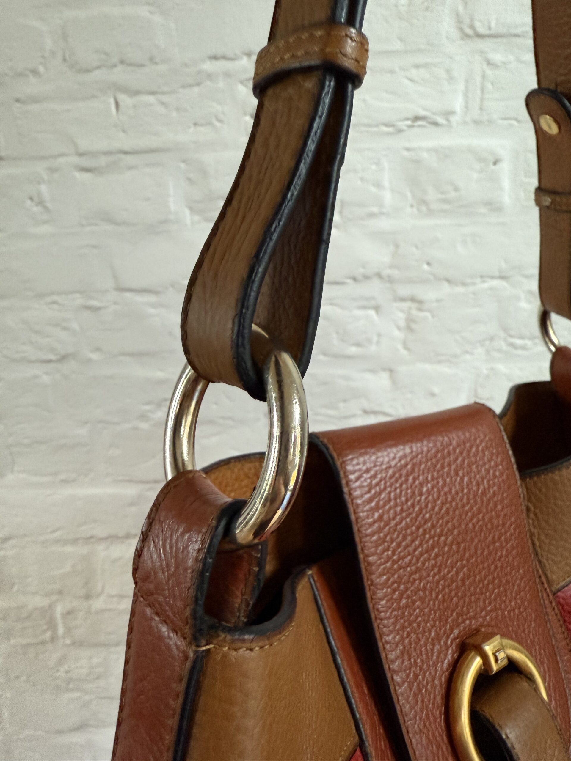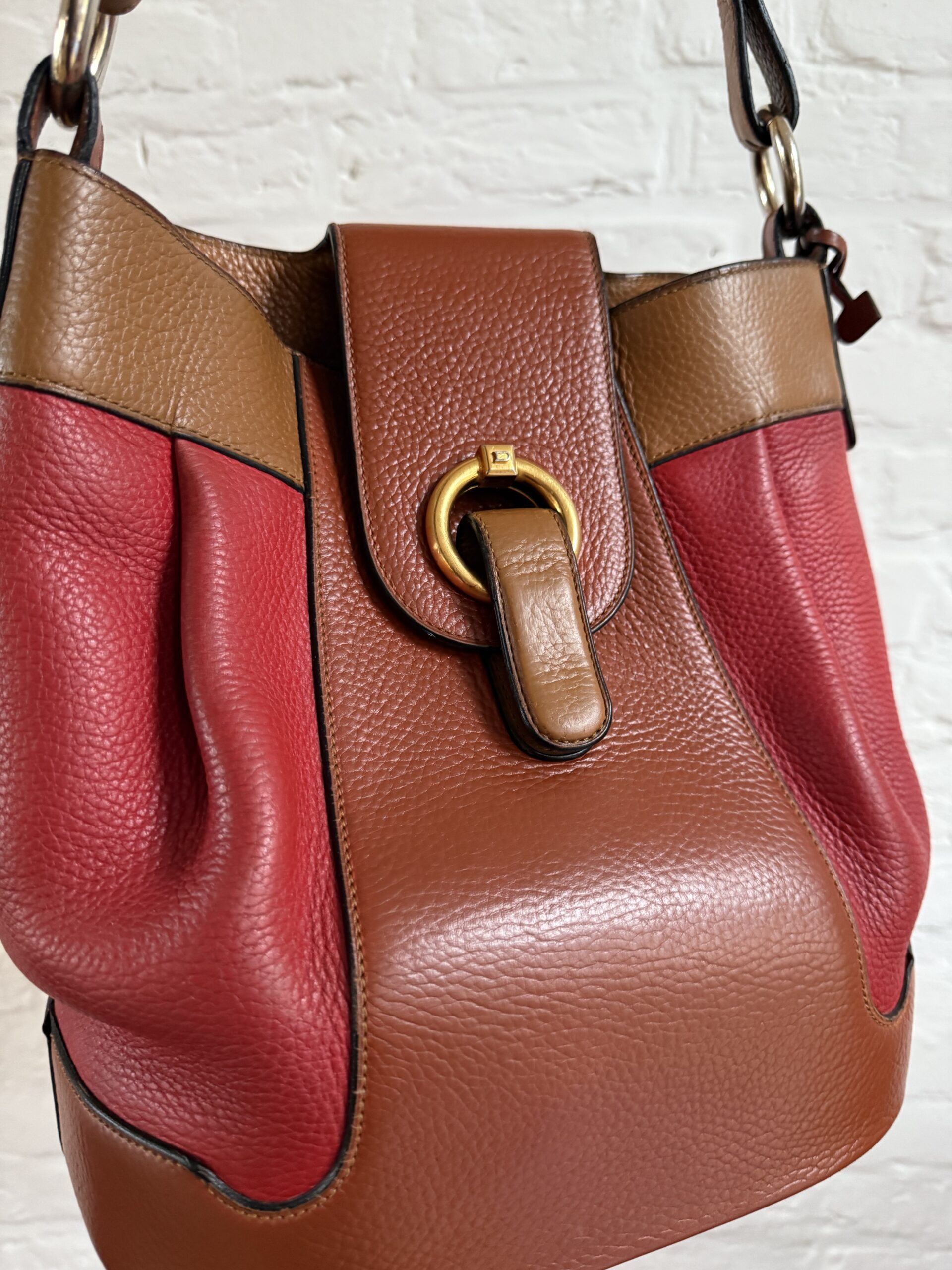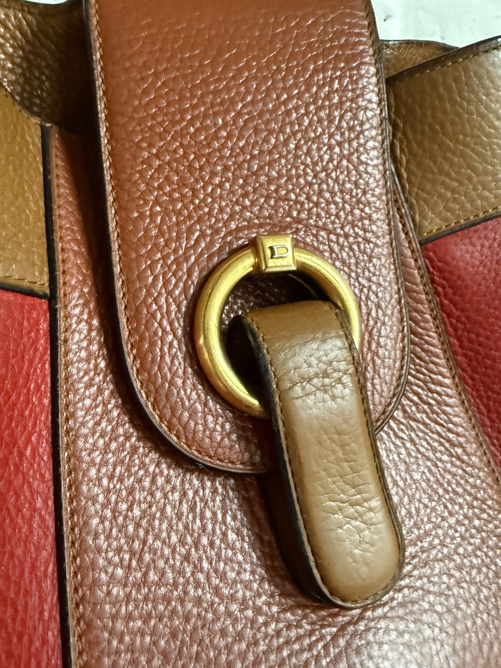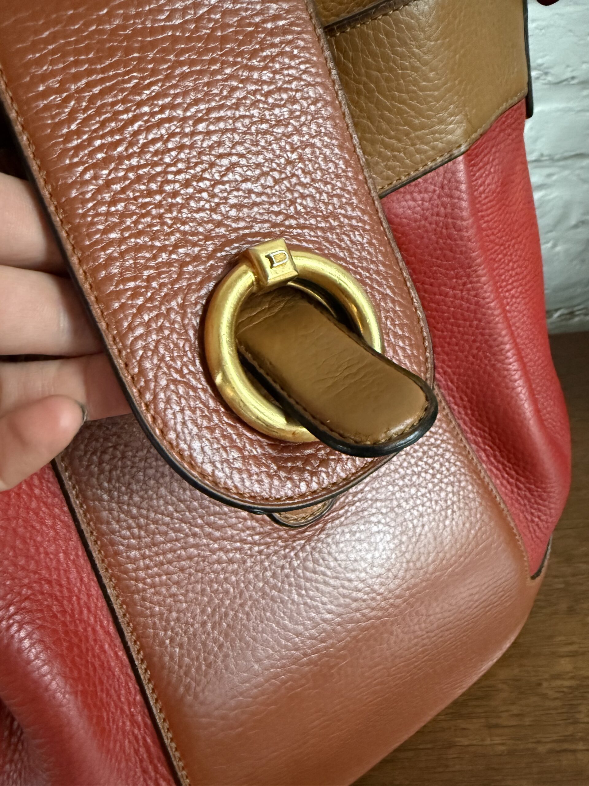 De tas is afgewerkt met een mooi detail in gouden hardware. Het leder werd volledig gerestaureerd en is prachtig! Ook de kantverf werd hersteld, kijk even hoe smooth die is bovenaan op de tas. ***fier***