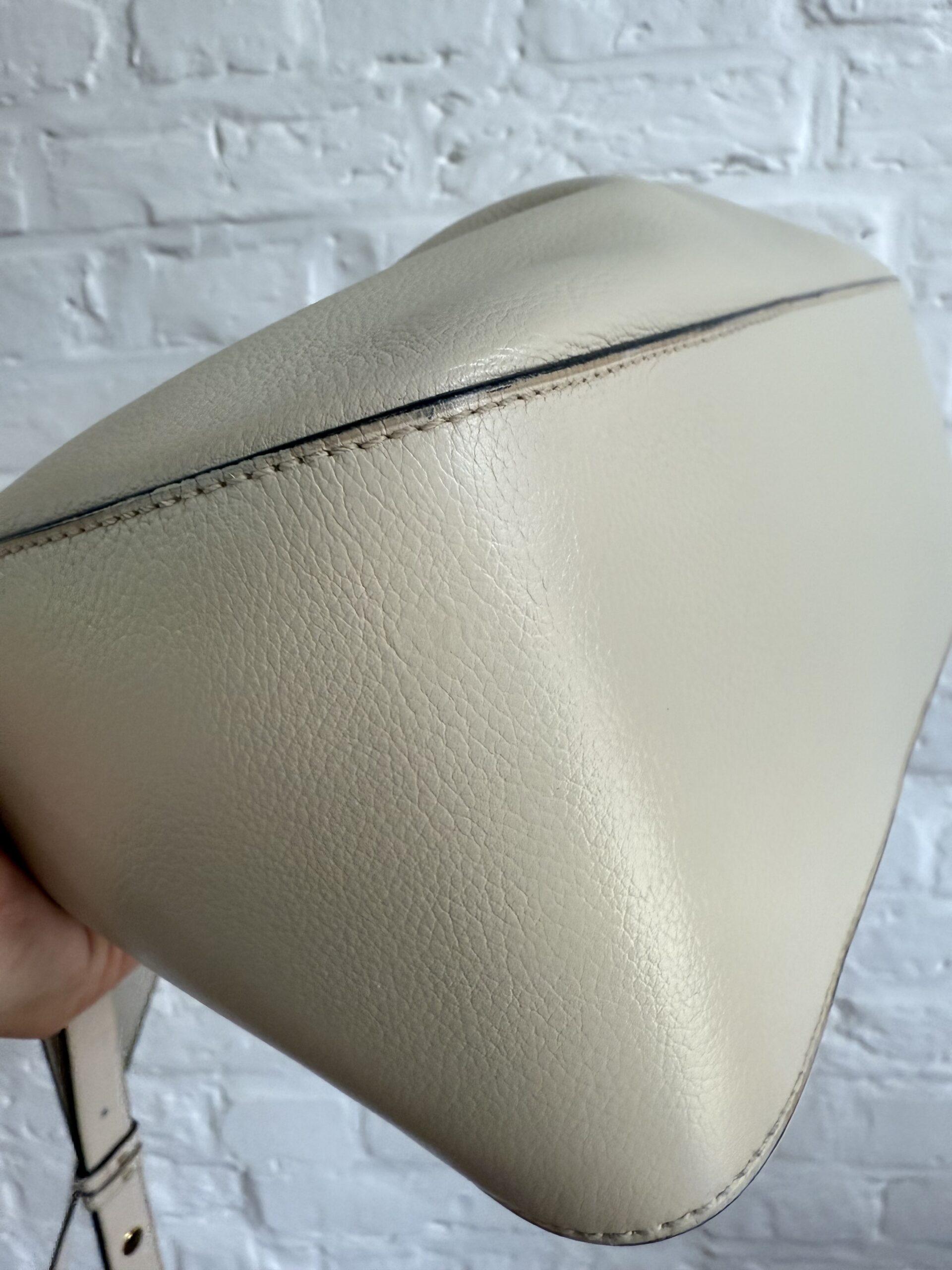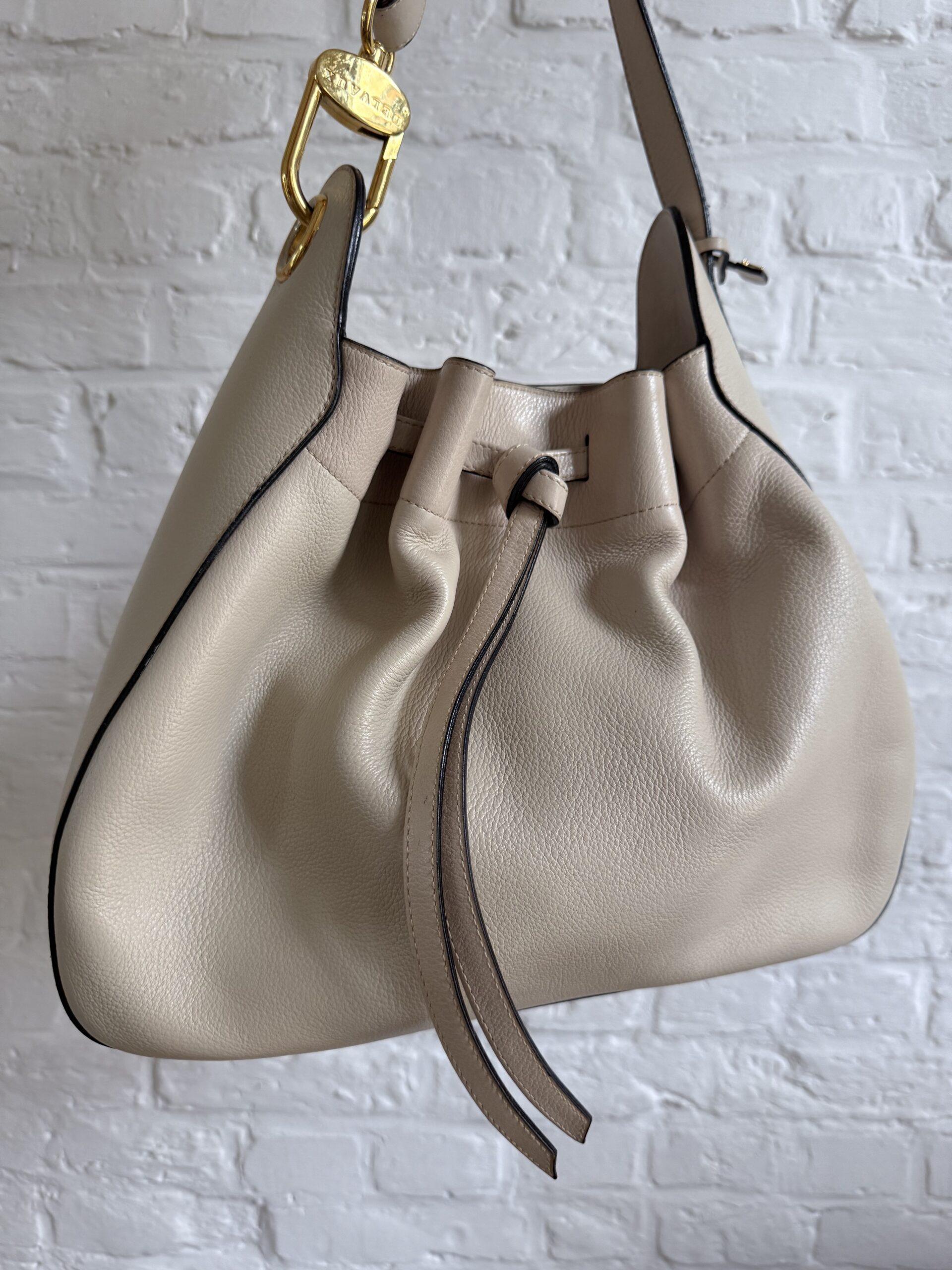 Hij heeft de ambities van een heuse bucketbag, maar is heel erg draagbaar omdat hij eigenlijk maar zo groot is als een ruime handtas. Ideaal, want je draagt hem daardoor ook als crossbody of over de schouder.