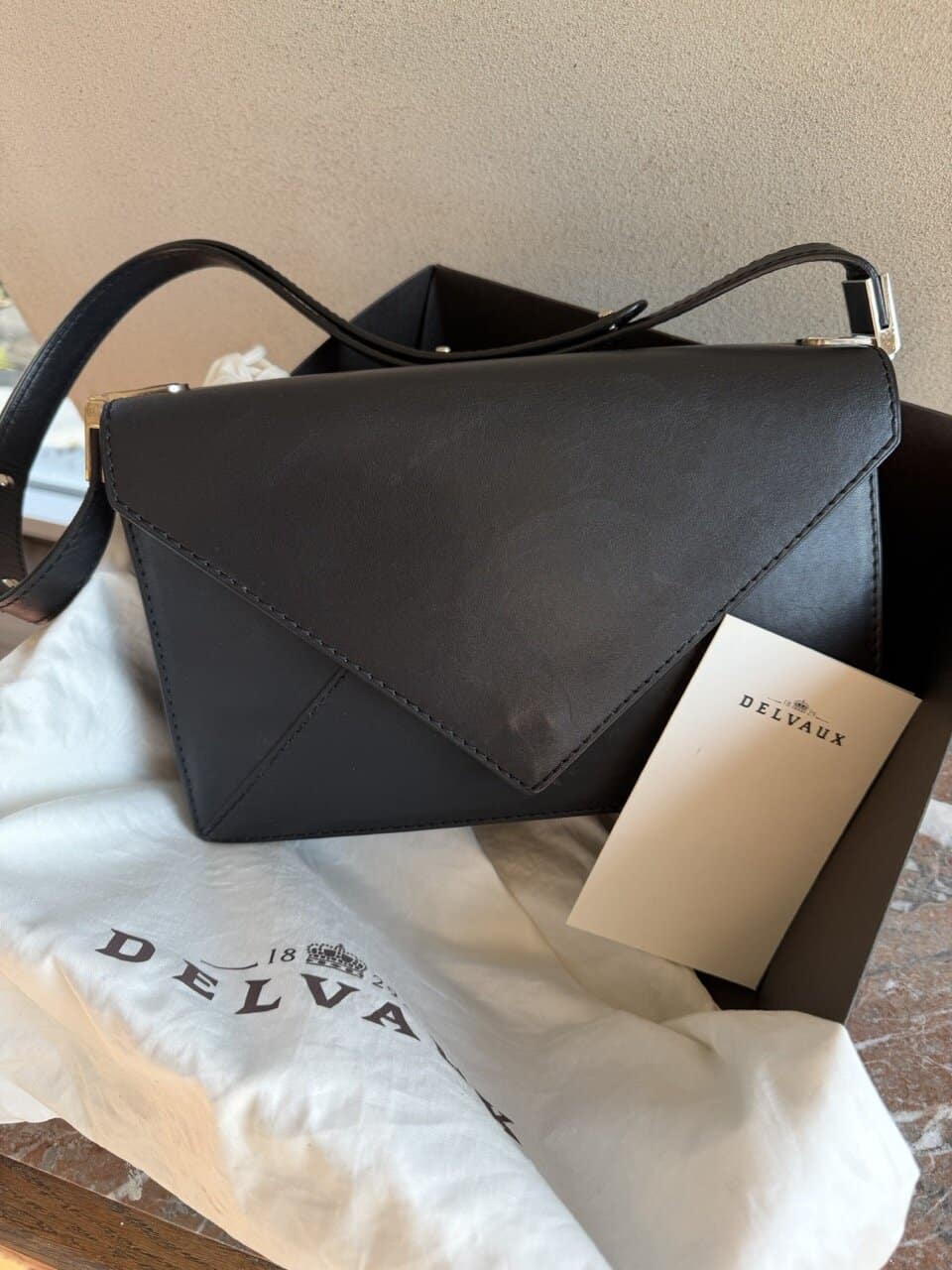 | Accessories | Authentieke Delvaux stofzak, Certificaat, Spiegel |
