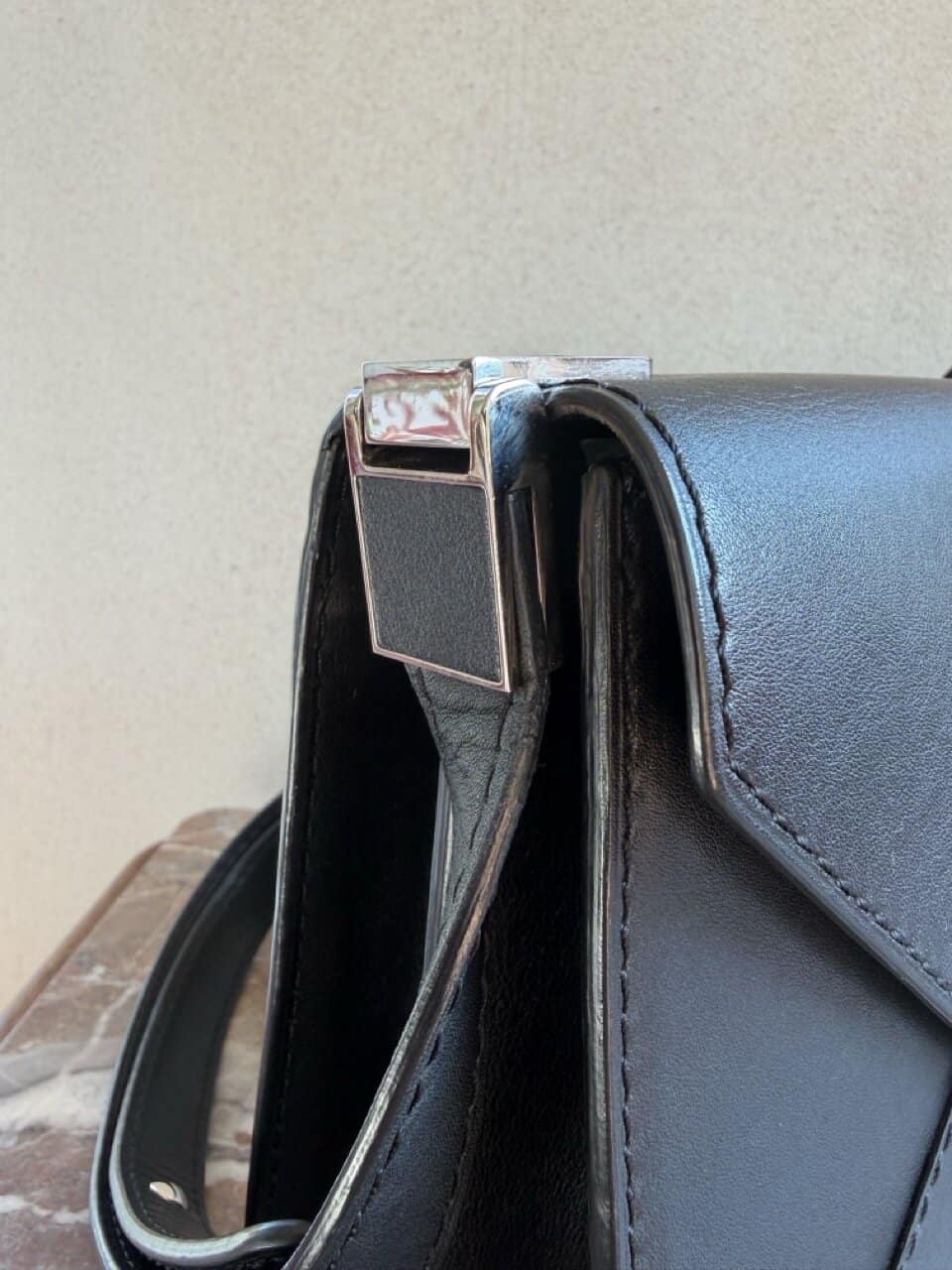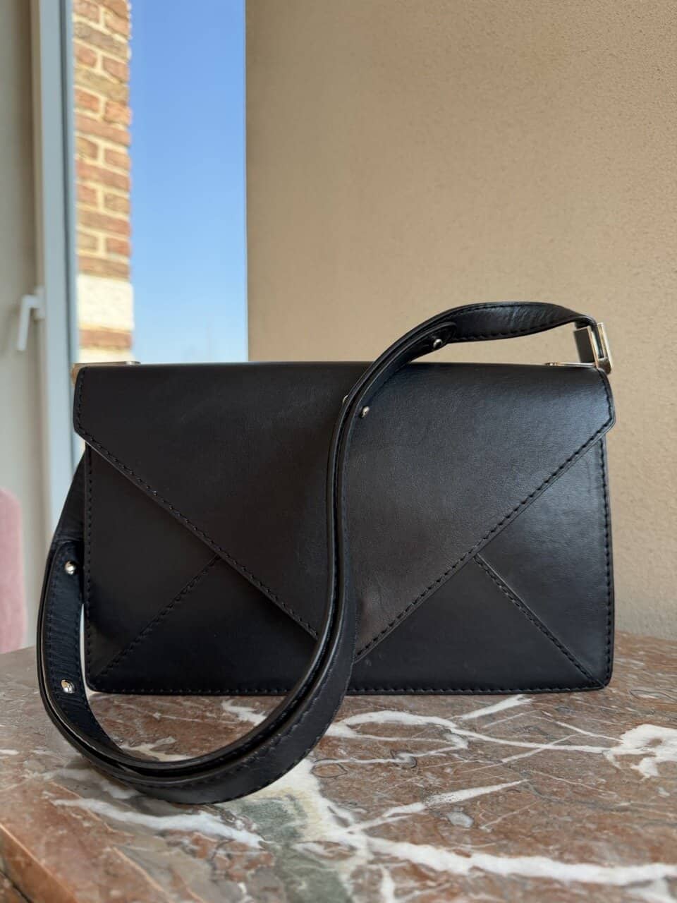 Deze Message Ambigu komt in Noir Destrier Souple en is afgewerkt met zilveren hardware. Je opent de tas met een schakelslot dat toegang geeft tot 2 grote en 2 kleinere compartimenten, die op hun beurt de tas haar mooie vorm geven.