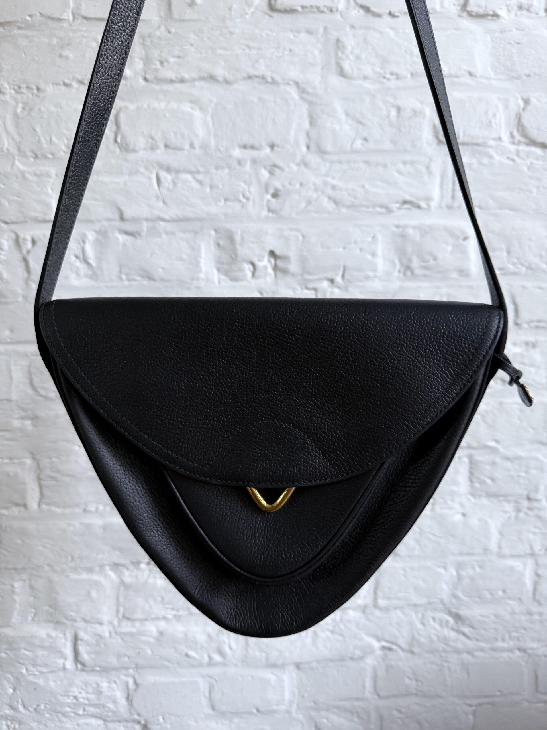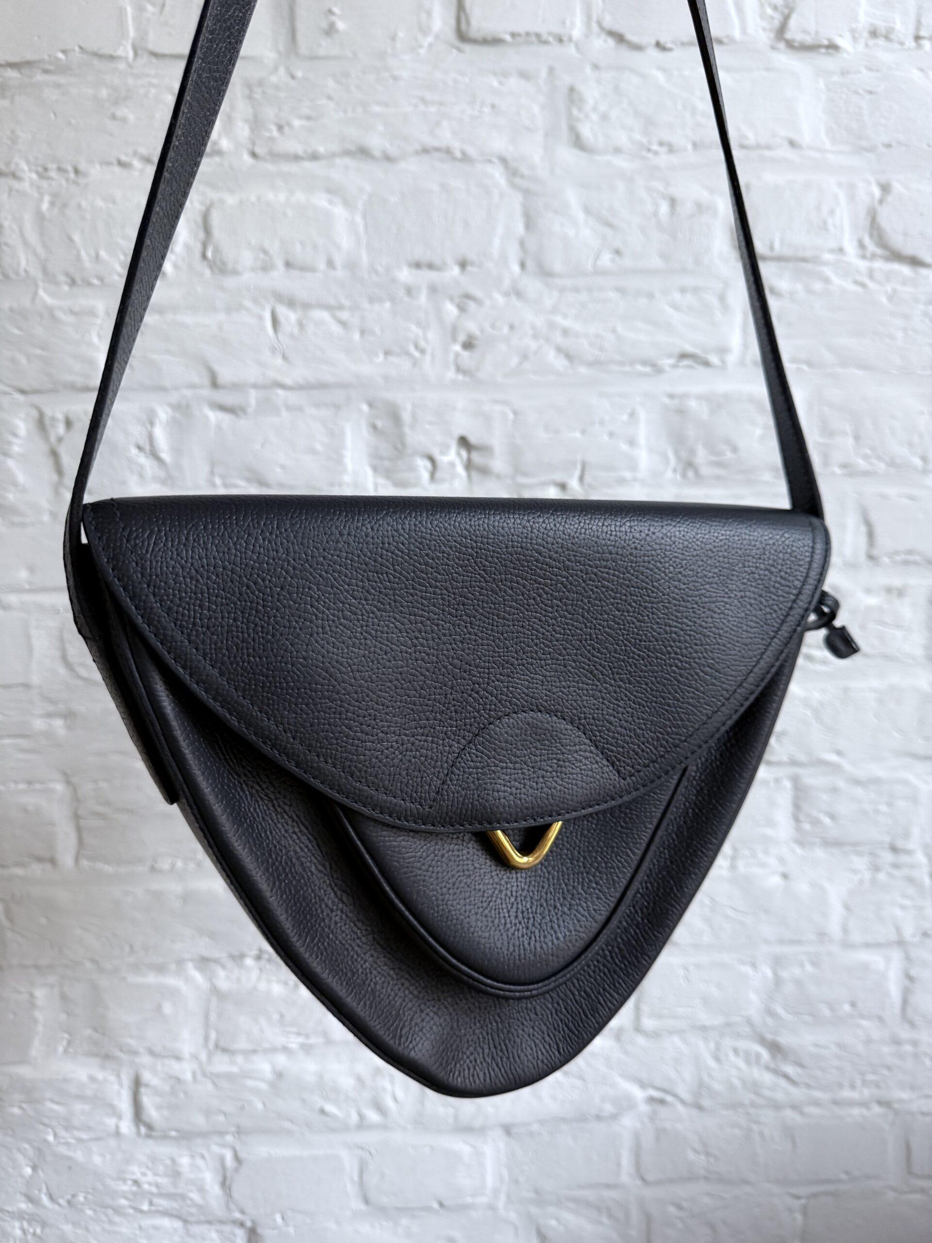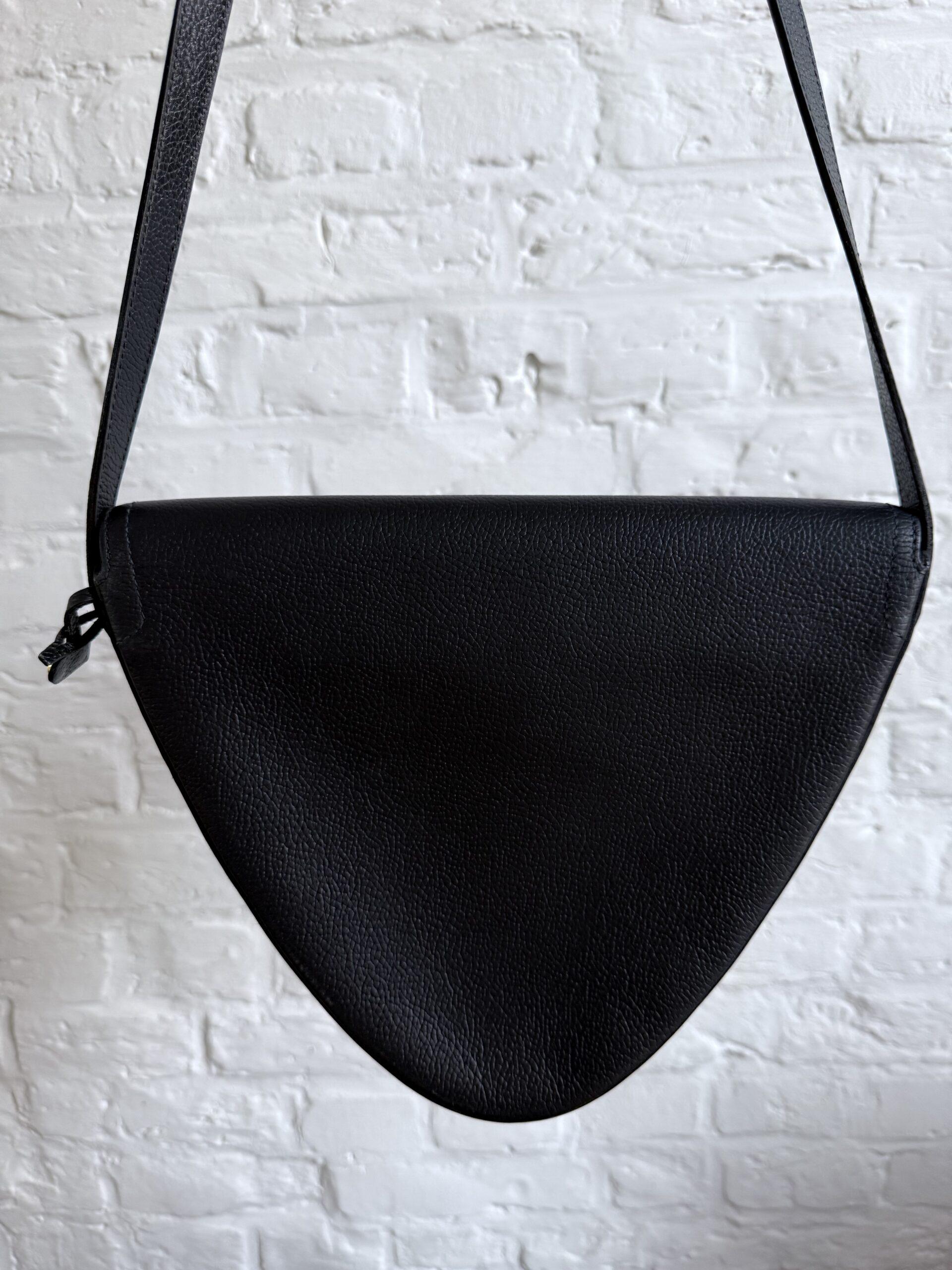 Deze driehoekige crossbody van Delvaux is niet alleen waanzinnig origineel, hij is ook makkelijk in gebruik. De riem is verstelbaar naar wens en de tas bestaat uit een extra zakje vooraan onder de flap. Leuk!