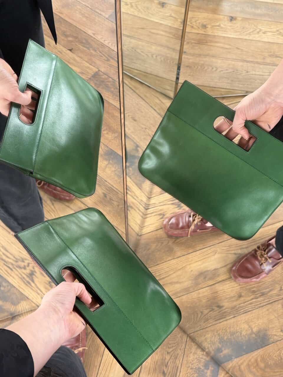 Atelier Mémé besteedt veel tijd en aandacht aan het zorgvuldig selecteren en, indien nodig, retoucheren van originele Delvaux handtassen. De tas is zo correct mogelijk in beeld gebracht met imperfecties die horen bij de vintage staat en manuele ambacht van zowel de Delvauxtas als de ambacht van het restaureren.