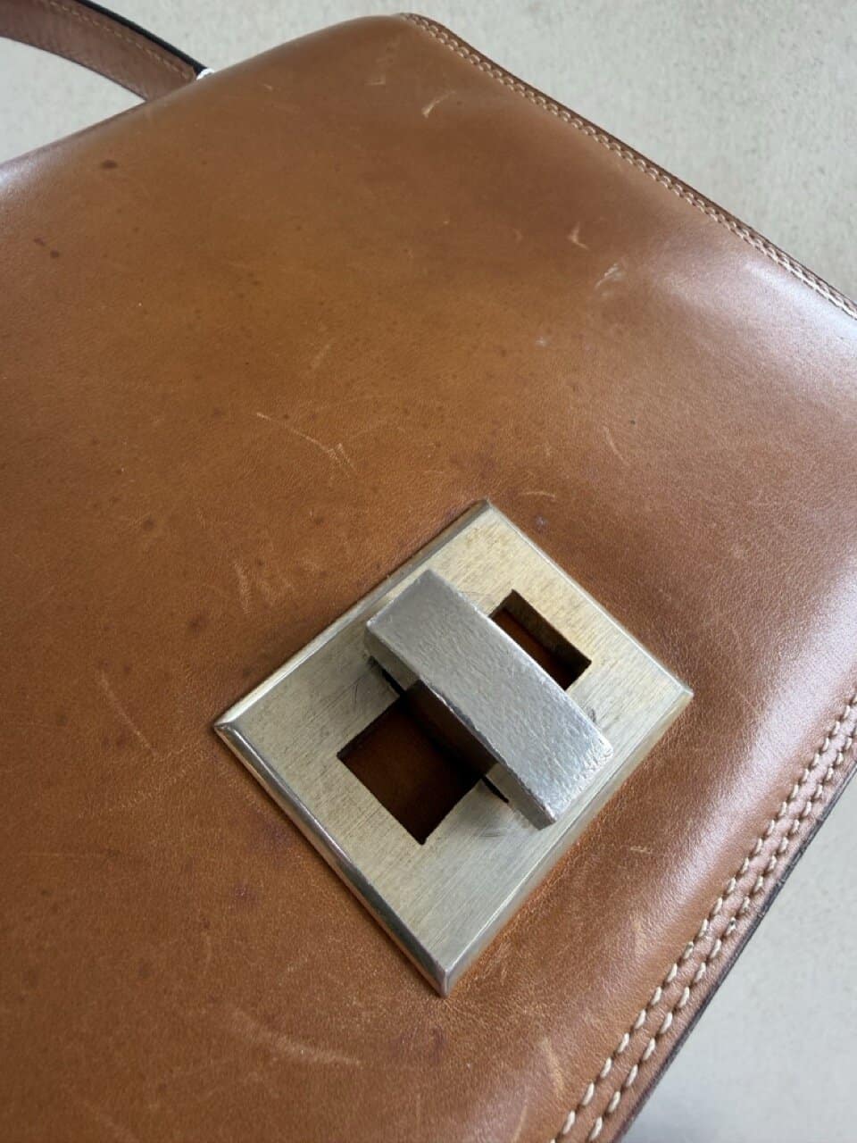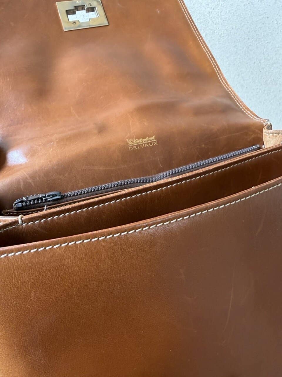 Atelier Mémé besteedt veel tijd en aandacht aan het zorgvuldig selecteren en, indien nodig, retoucheren van originele Delvaux handtassen. De tas is zo correct mogelijk in beeld gebracht met imperfecties die horen bij de vintage staat en manuele ambacht van zowel de Delvauxtas als de ambacht van het restaureren.