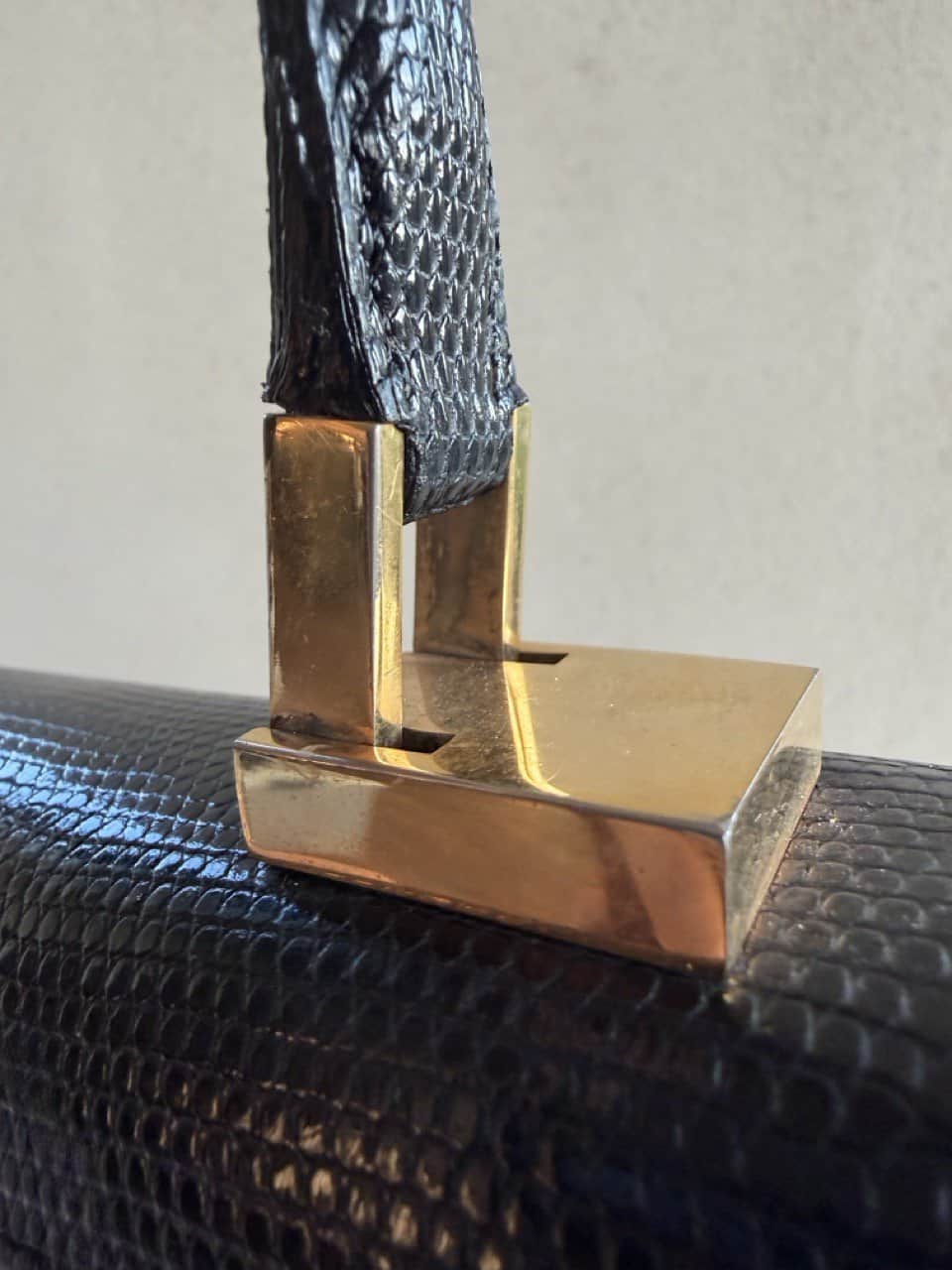 De vormgeving is krachtig en tijdloos. Zijn uitvoering in hagedis.